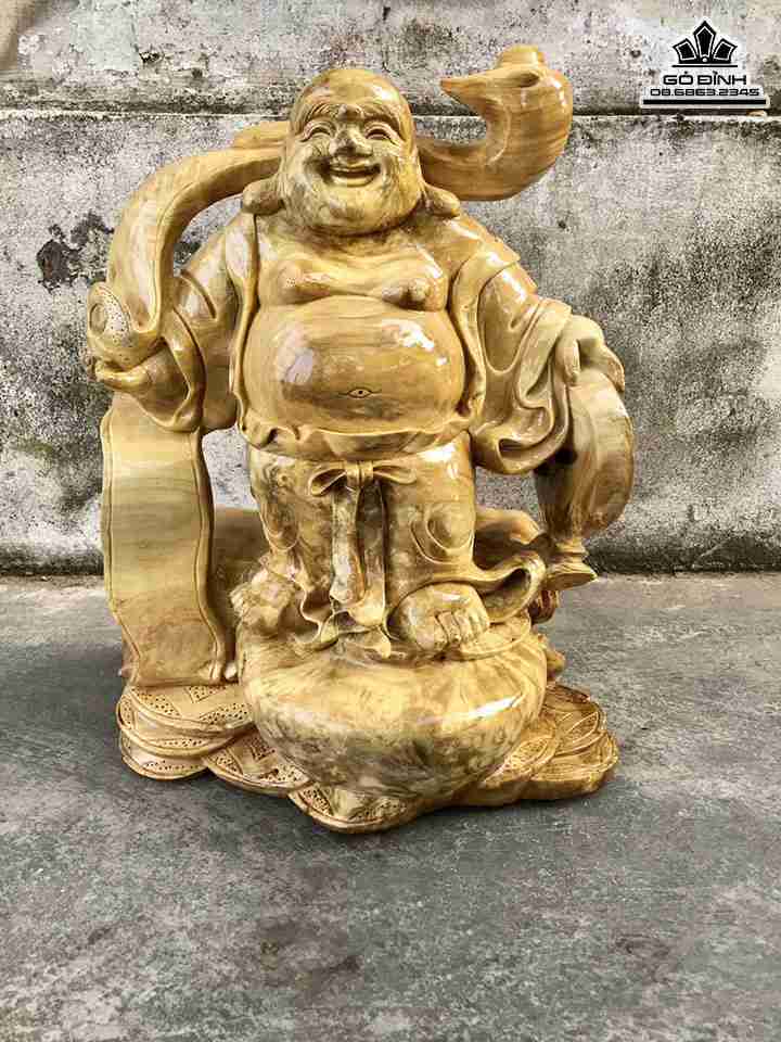 Tượng Phật Di Lặc vác gậy như ý gỗ nu nghiến cao 48 rộng 34 dày 20 (cm)
