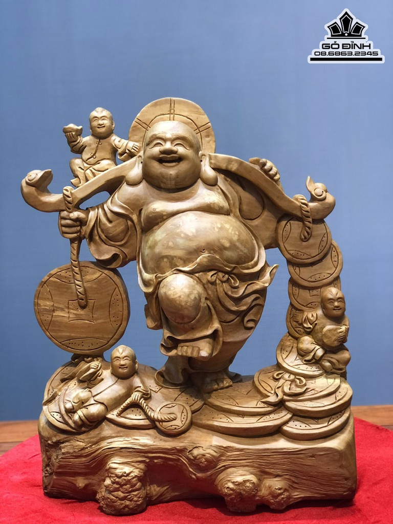 Tương Phật Di Lặc Vác Gậy Như Ý Gỗ Nu Nghiến Cao 59 Ngang 46 Sâu 20 (cm)