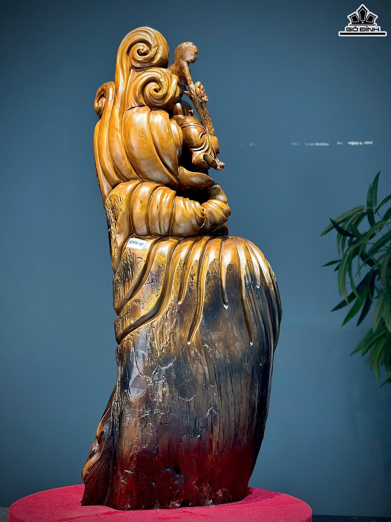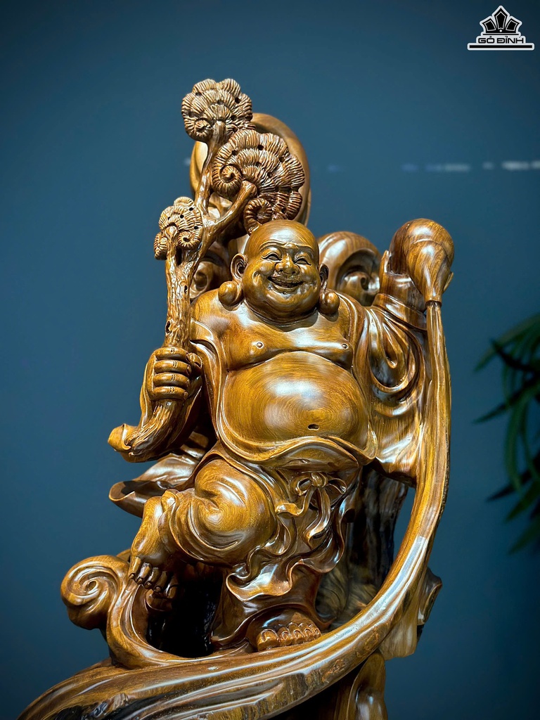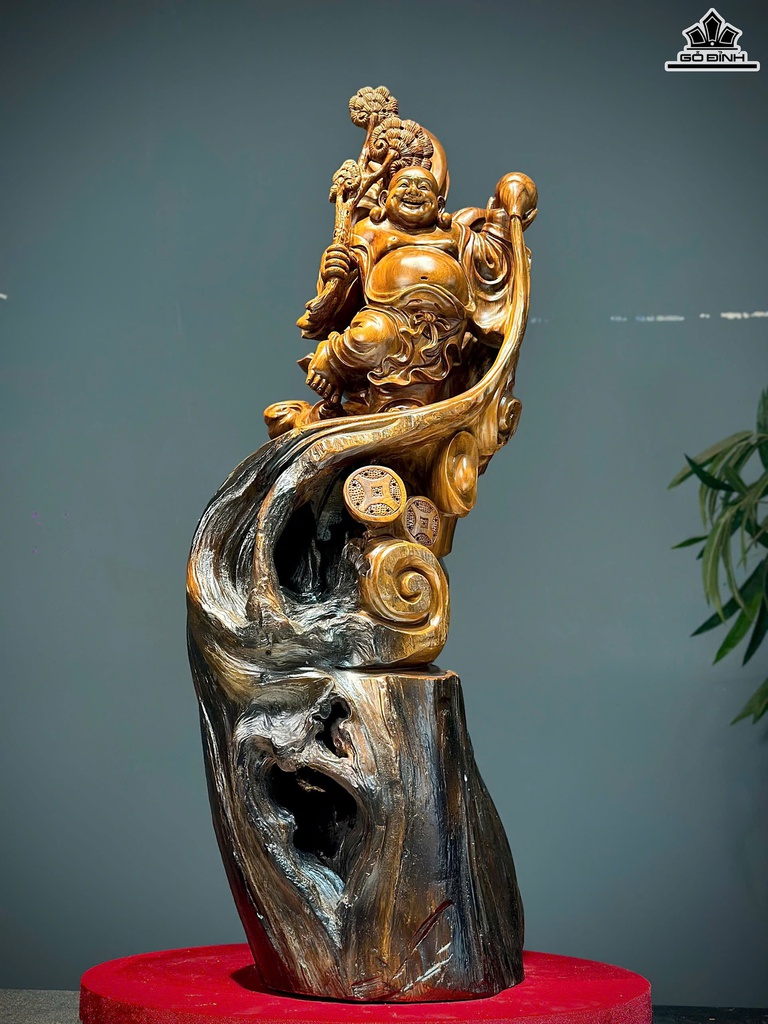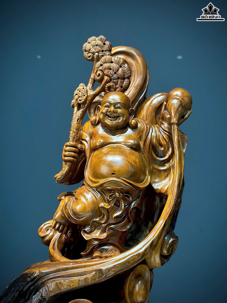 Tượng Phật Di Lặc Vác Nấm Gỗ Ngọc Am Cao 88 Ngang 26 Sâu 29 (cm)