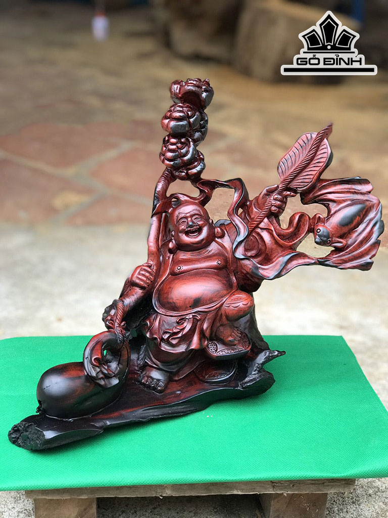 Tượng Phật Di Lặc Vác Quạt Gỗ Trắc Cao 29 Ngang 34 Sâu 13 (cm)