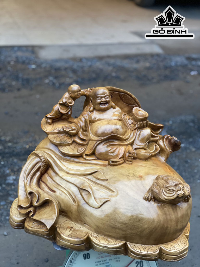 Tượng Phật Ngồi Bao Tiền Gỗ Xá Xị Cao 34 Ngang 46 Sâu 33 (cm)