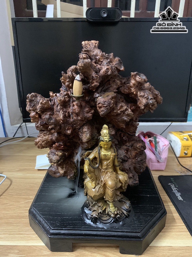 Tượng Phật Quan Âm Gỗ Cẩm Cao 23 Ngang 27 Sâu 23 (cm)