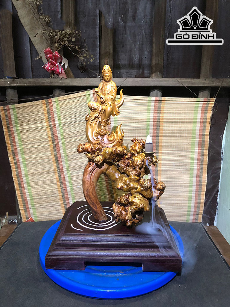 Tượng Phật Quan Thế Âm Bồ Tát Gỗ Trâm Vàng Cao 33 Ngang 16 Sâu 12 (cm)