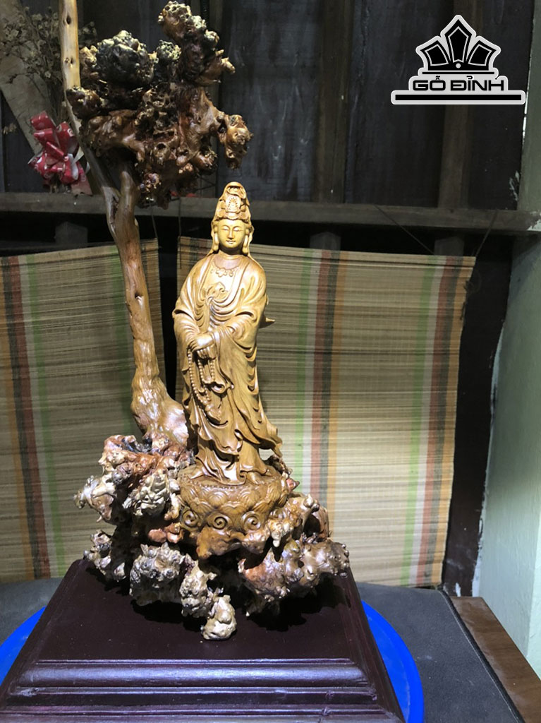 Tượng Phật Quan Thế Âm Bồ Tát Gỗ Trâm Vàng Cao 51 Ngang 18 Sâu 16 (cm)
