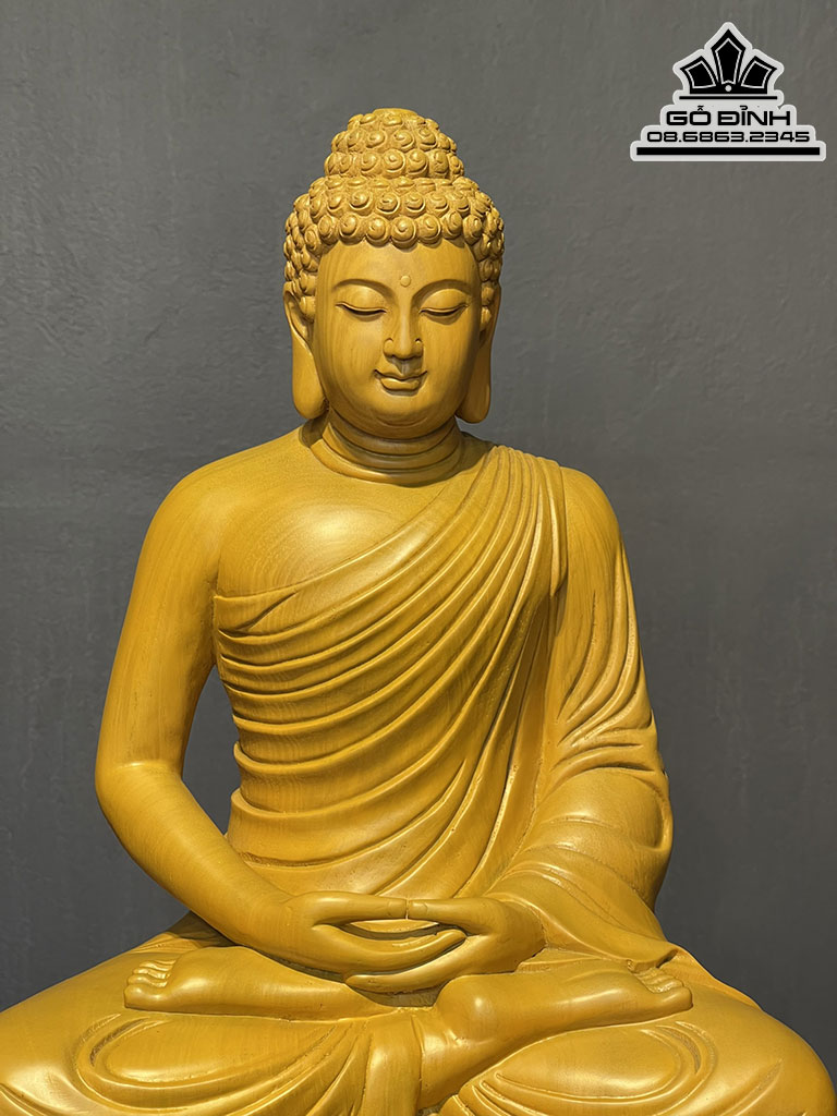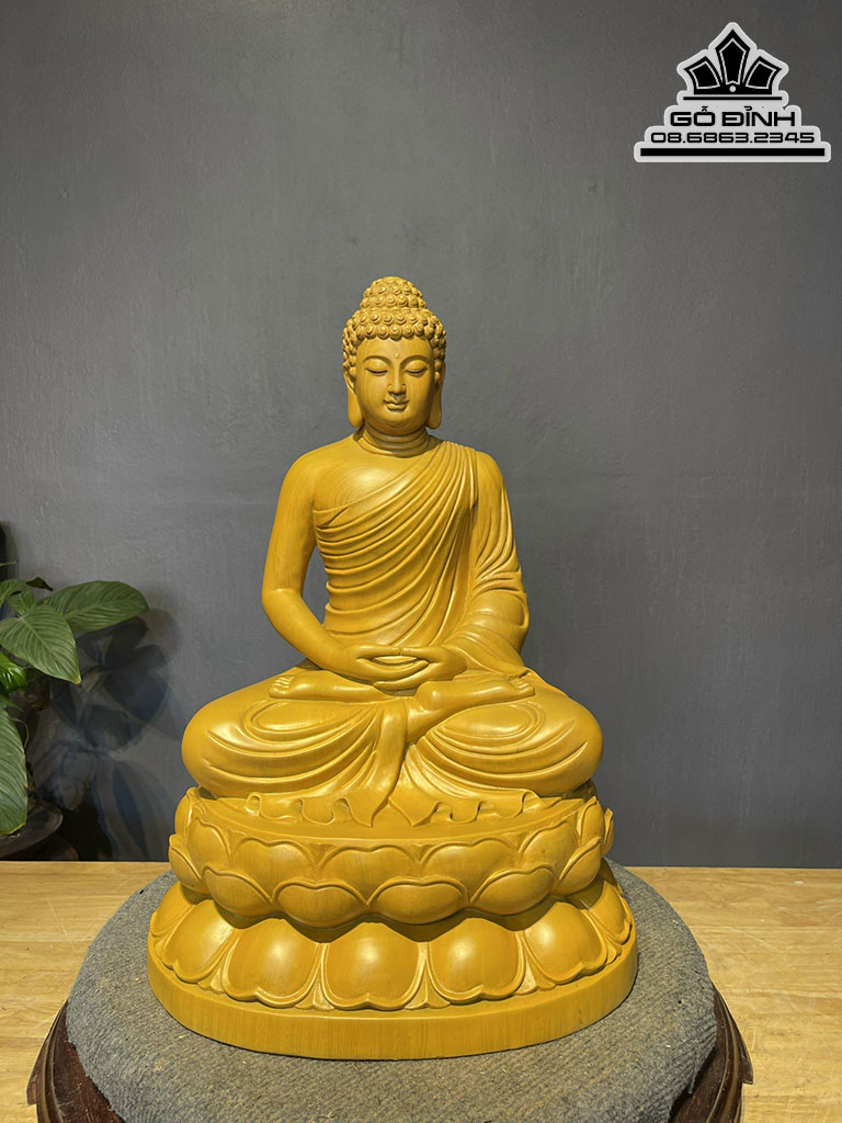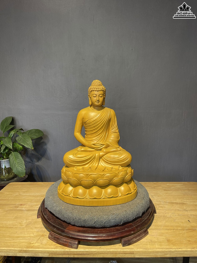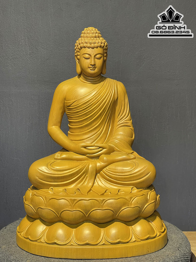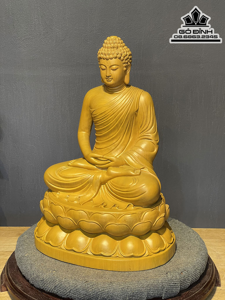 Tượng Phật Thích Ca Gỗ Gõ Vàng Cao 51 Ngang 36 Sâu 28 (cm)