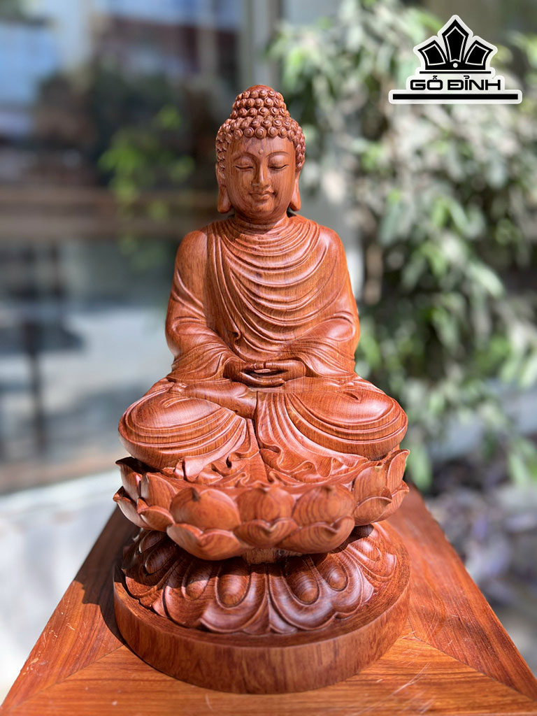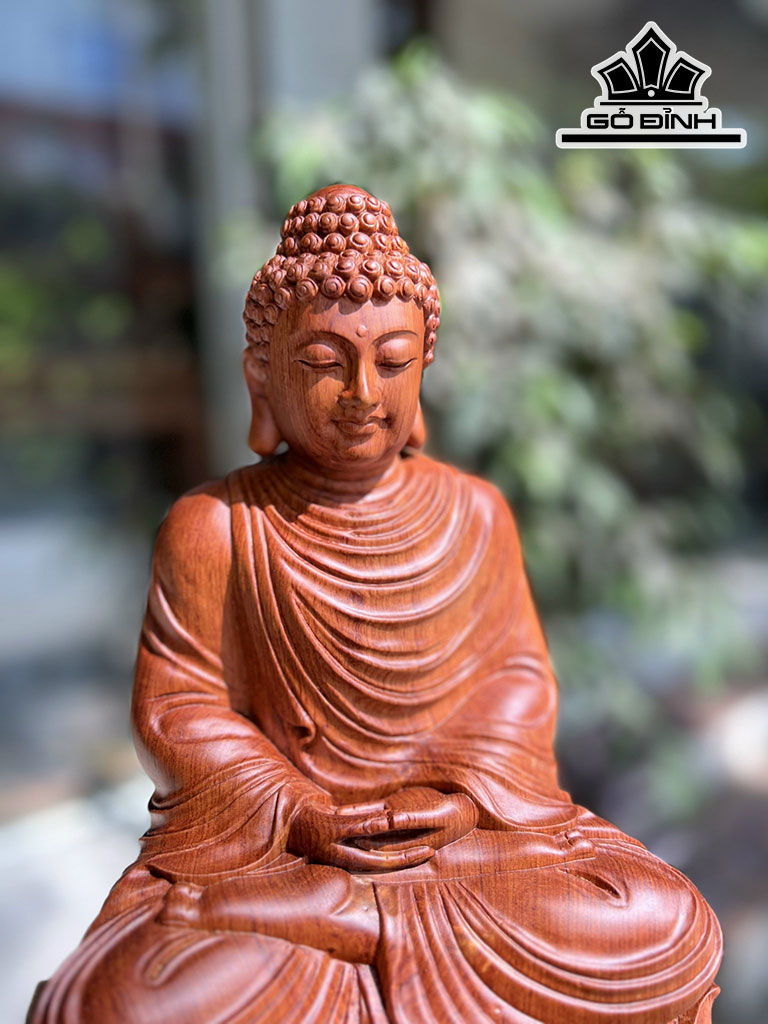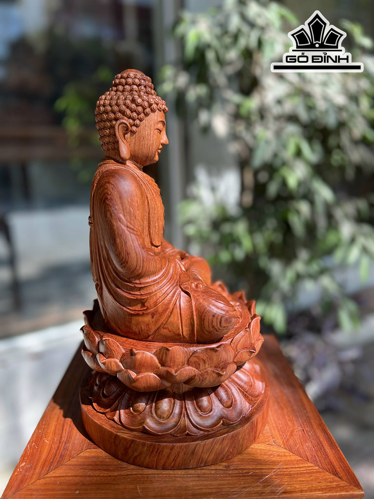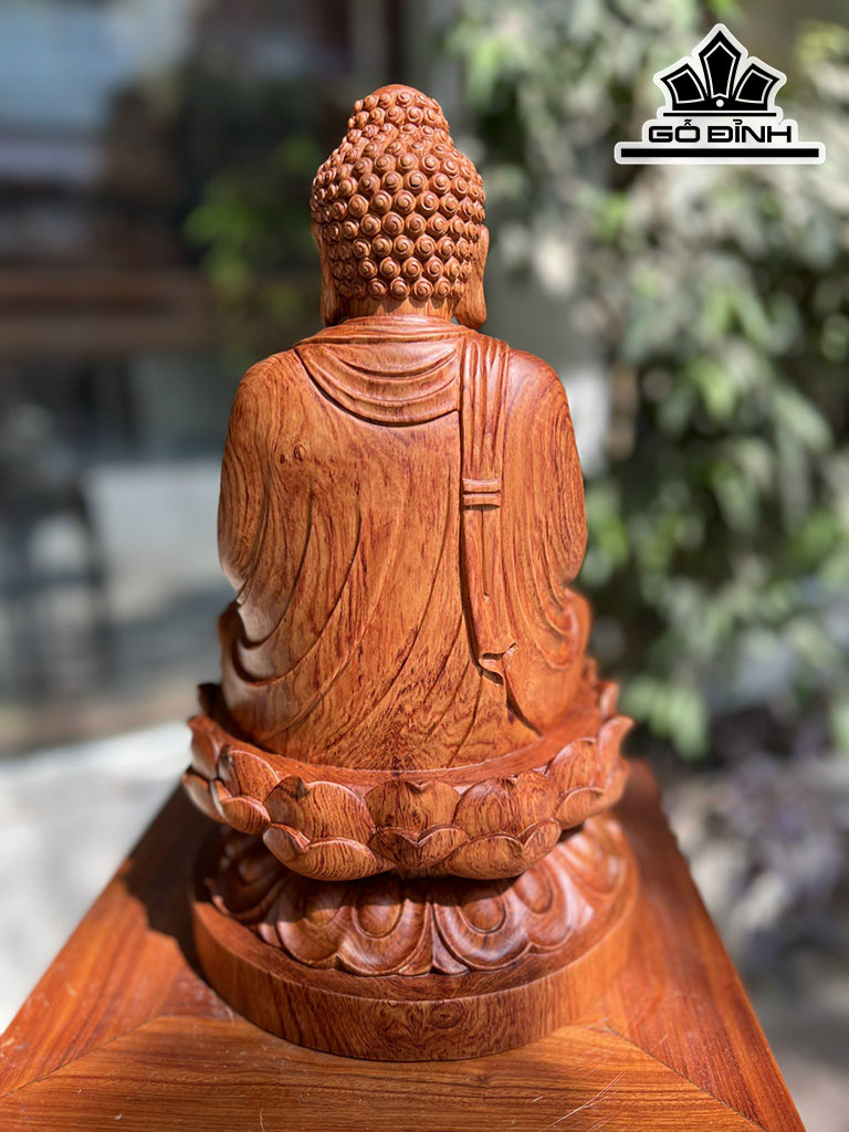 Tượng Phật Thích Ca Mâu Ni Phật Gỗ Gõ Vàng Cao 35 Ngang 18 Sâu 18 (cm)