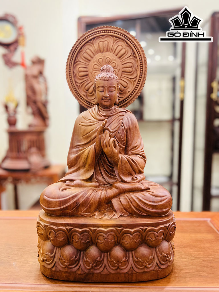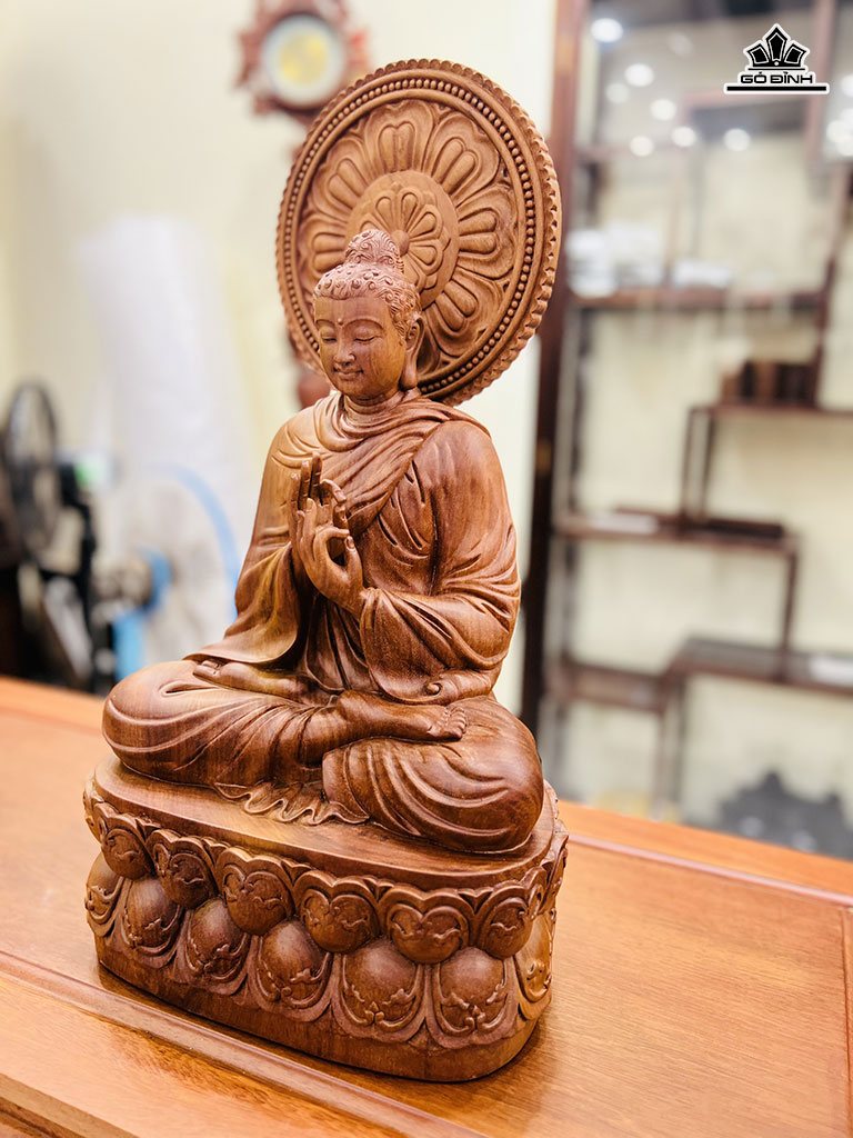 Tượng Phật Thích Ca Mâu Ni Phật Gỗ Gõ Vàng Cao 42 Ngang 30 Sâu 22 (cm)