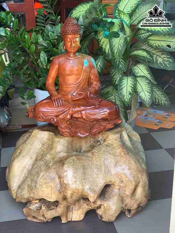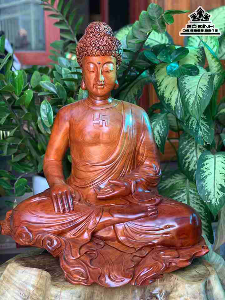 Tượng Phật Tổ A Di Đà Gỗ Hương Cao 60 Ngang 55 Sâu 40 (cm)