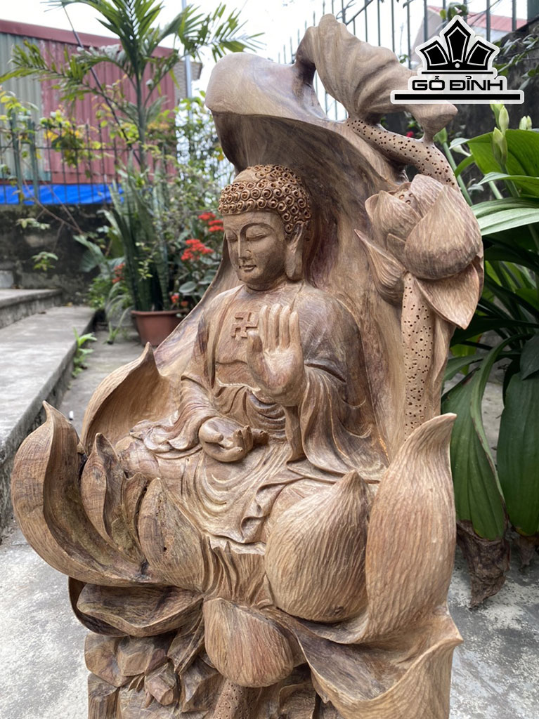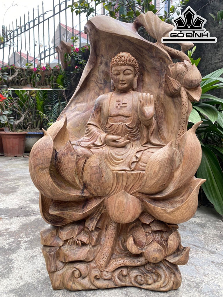 Tượng Phật Tổ Adida Gỗ Bách Xanh Cao 56 Ngang 34 Sâu 22 (cm)