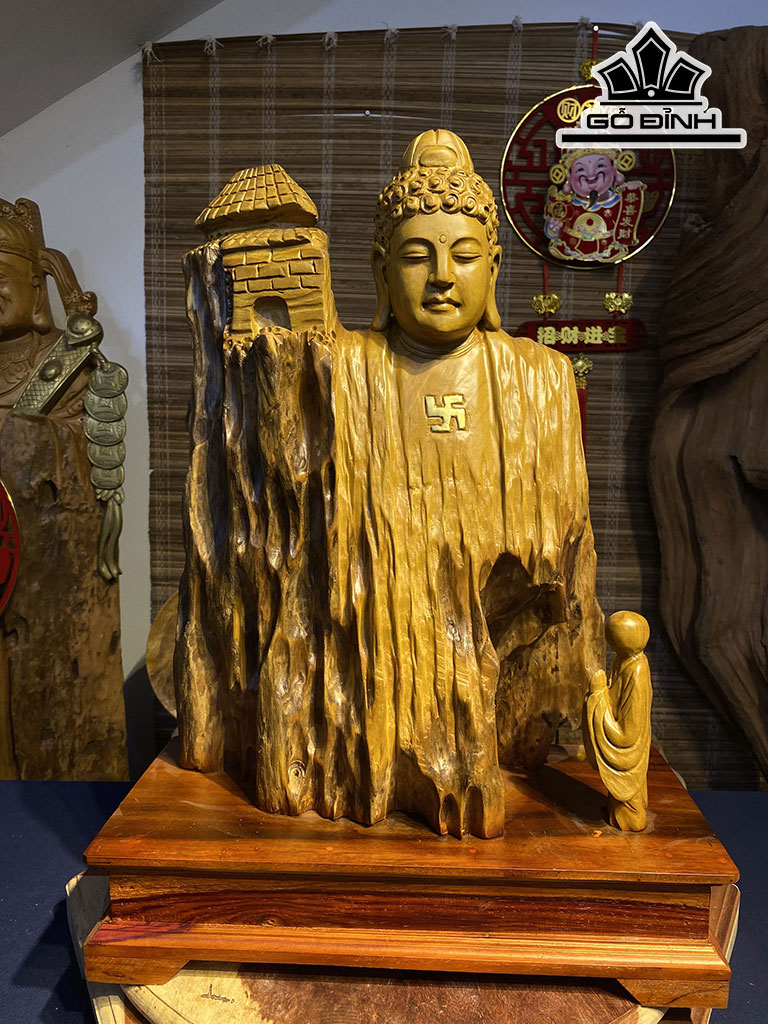 Tượng Phật Tổ Gỗ Lũa Dổi Cao 60 Ngang 45 Sâu 20 (cm)