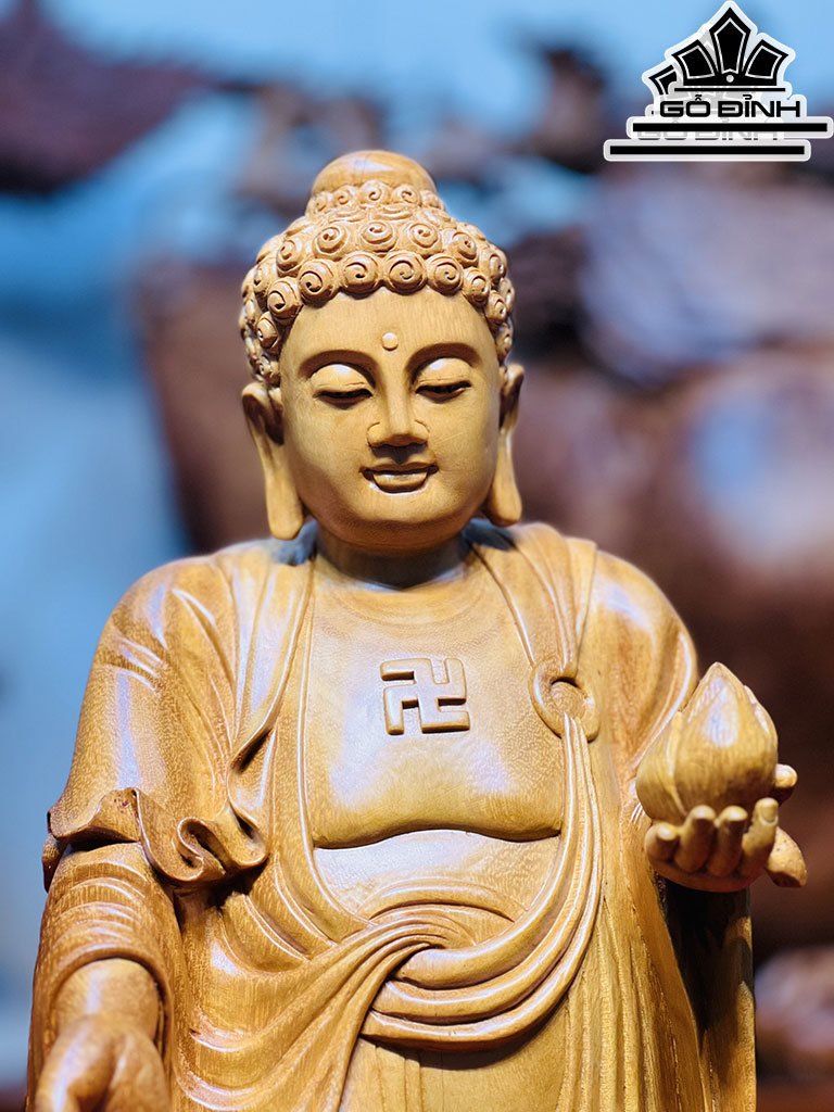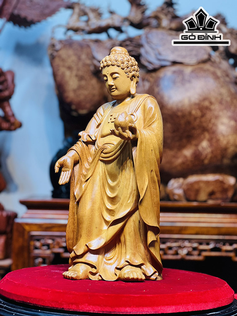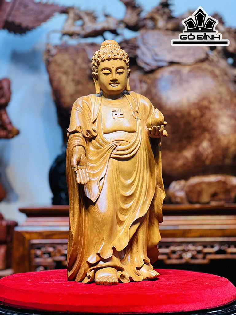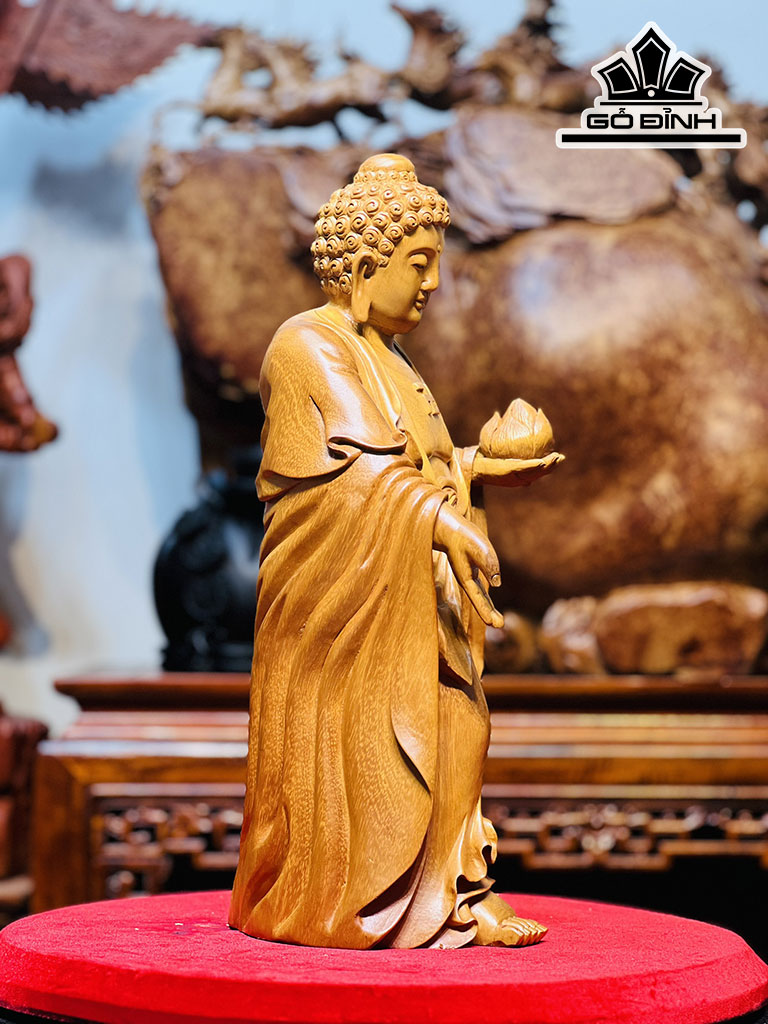 Tượng Phật Tổ Gỗ Mít Cao 43 Ngang 18 Sâu 18 (cm)