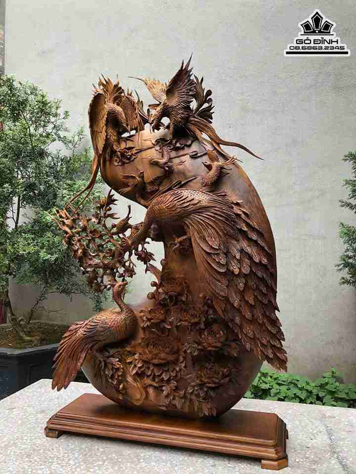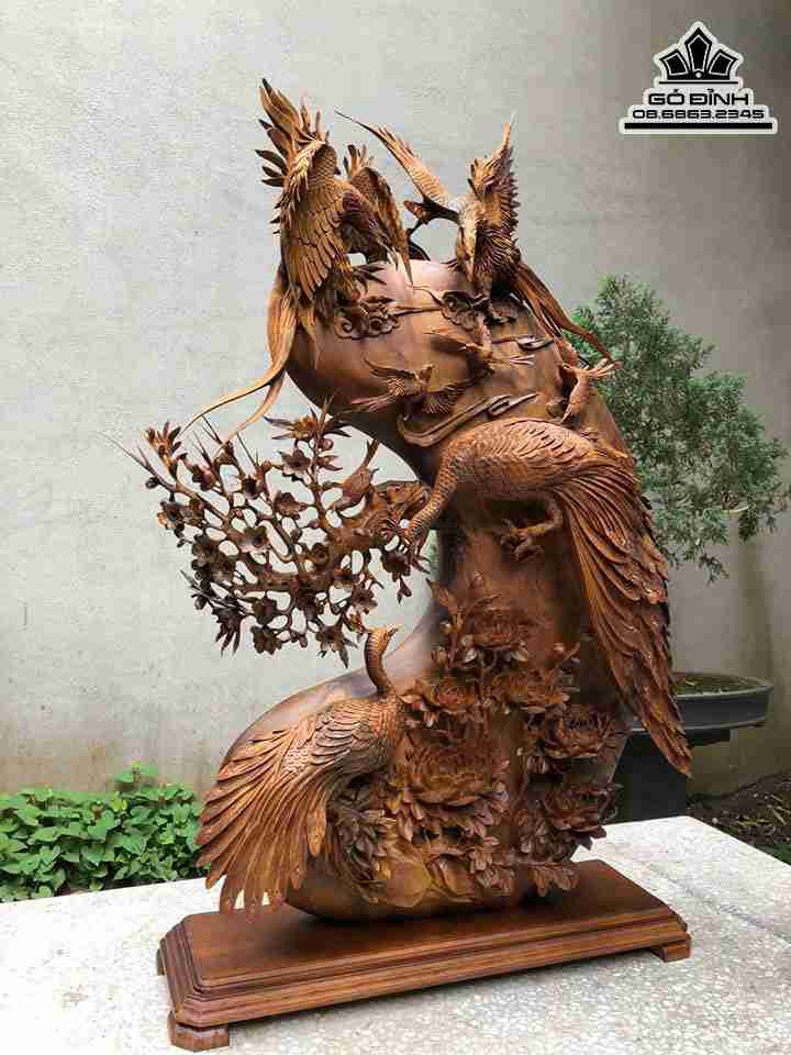 Tượng Phu Thê Viên Mãn Gỗ Bách Xanh Cao 100 Ngang 65 Sâu 22 (cm)