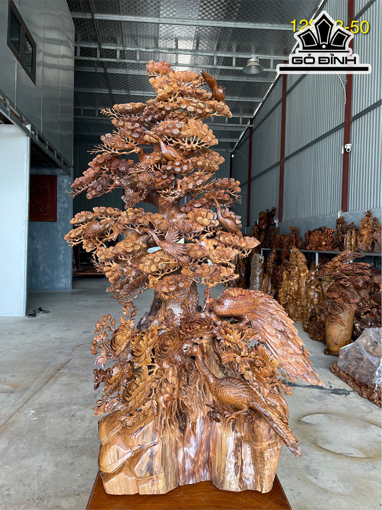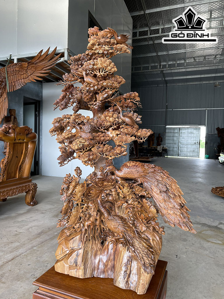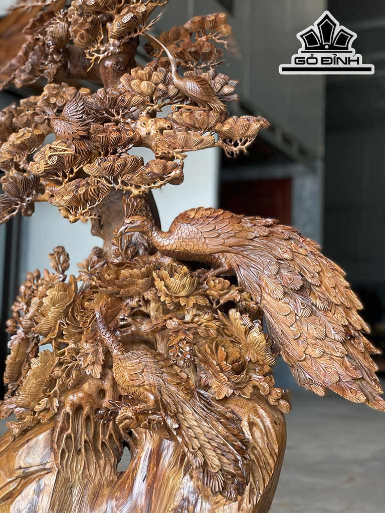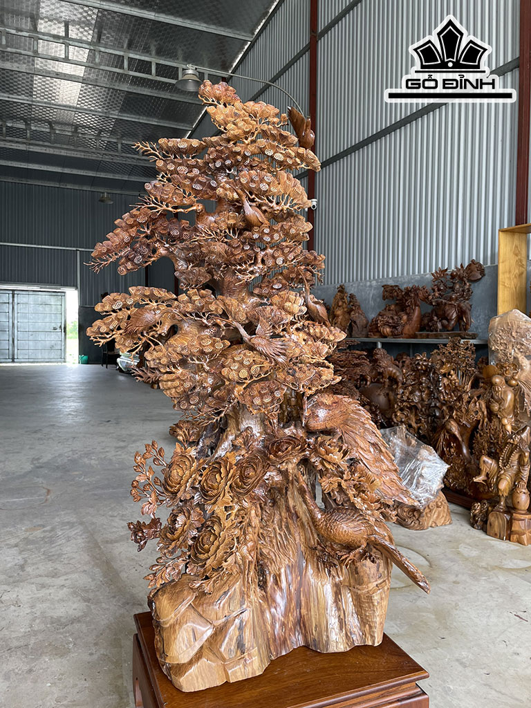 Tượng Phu Thê Viên Mãn Gỗ Bách Xanh Cao 128 Ngang 83 Sâu 50 (cm)