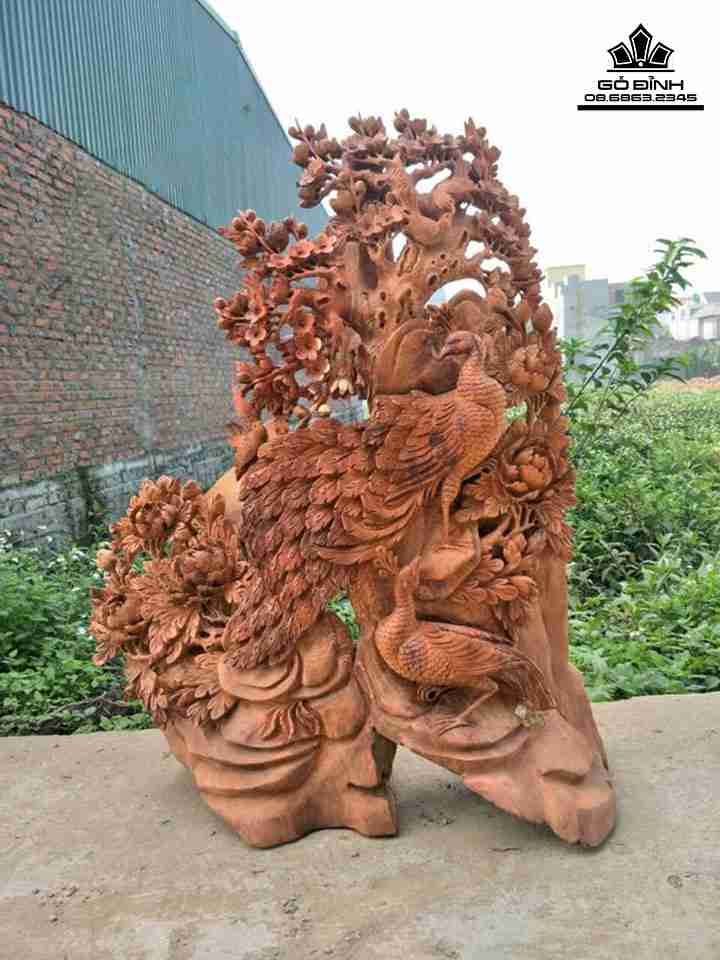 Tượng Phu Thê Viên Mãn Gỗ Hương Cao 93 Ngang 76 Sâu 25 (cm)