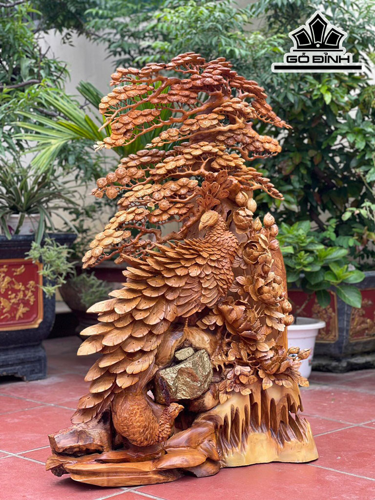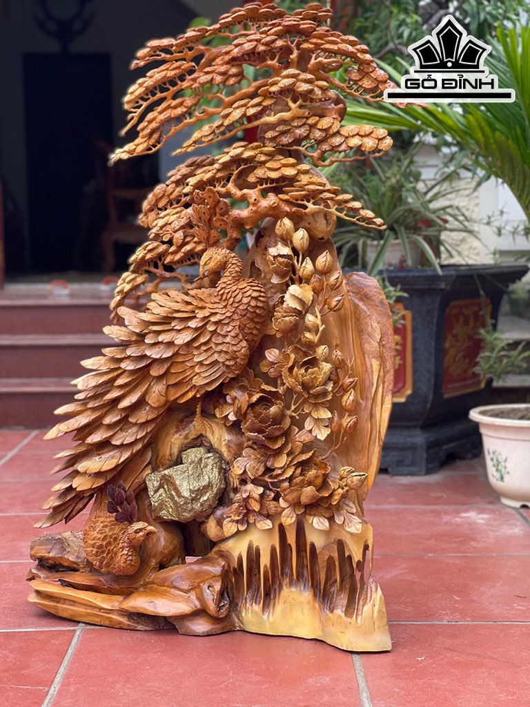 Tượng Phu Thê Viên Mãn Gỗ Hương Cao 117 Ngang 80 Sâu 30 (cm)