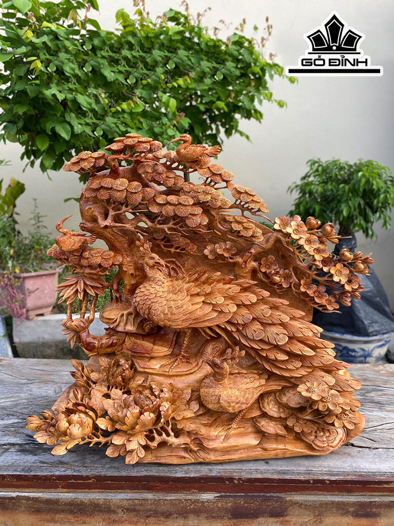 Tượng Phu Thê Viên Mãn Gỗ Hương Cao 68 Ngang 70 Sâu 30 (cm)