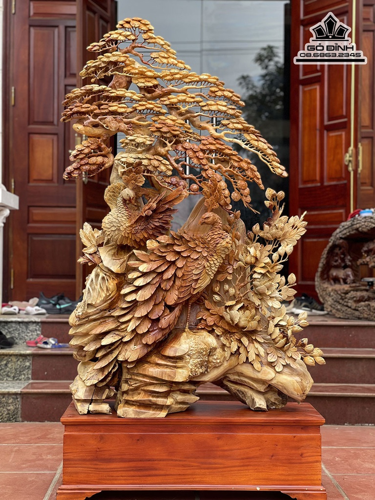 Tượng Phu Thê Viên Mãn Gỗ Hương Việt Cao 140 Ngang 86 Sâu 36 Cả Kỷ 168 (cm)