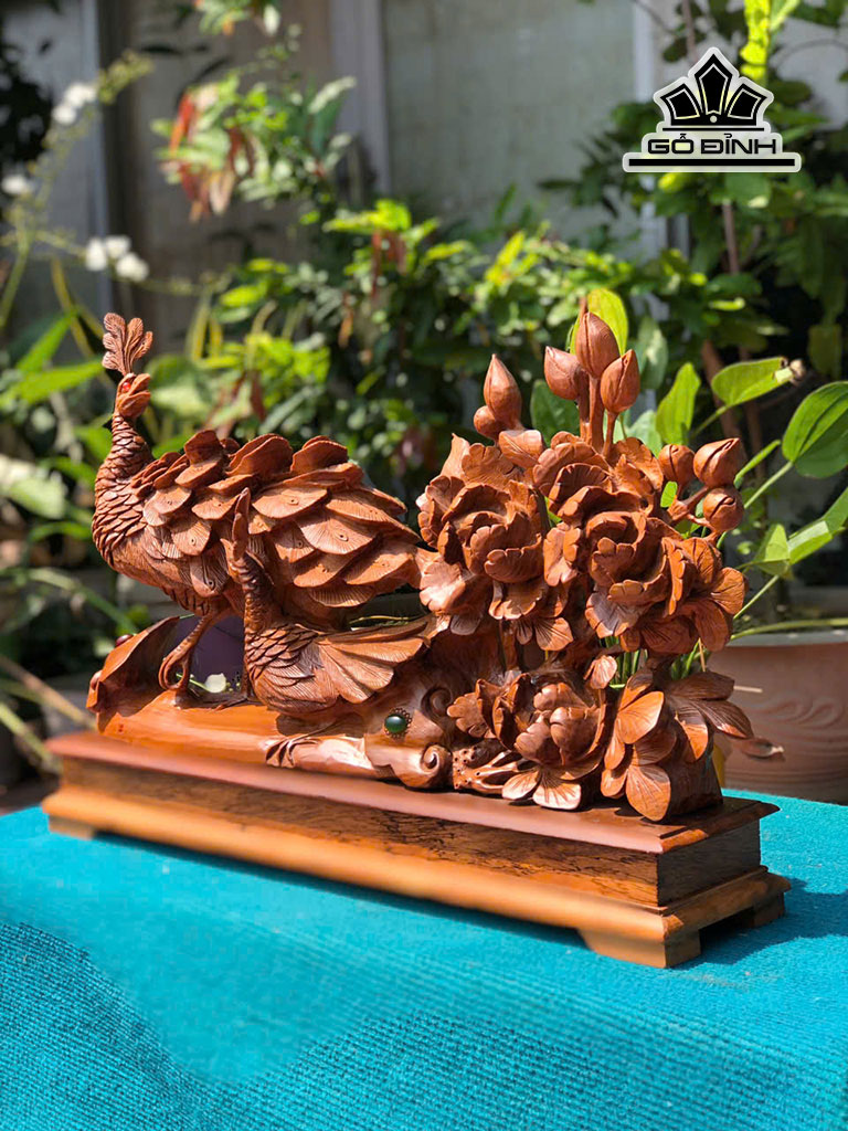 Tượng Phu Thê Viên Mãn Gỗ Ngọc Am Cao 41 Ngang 60 Sâu 10 (cm)