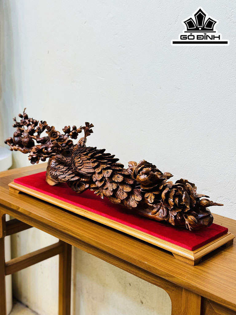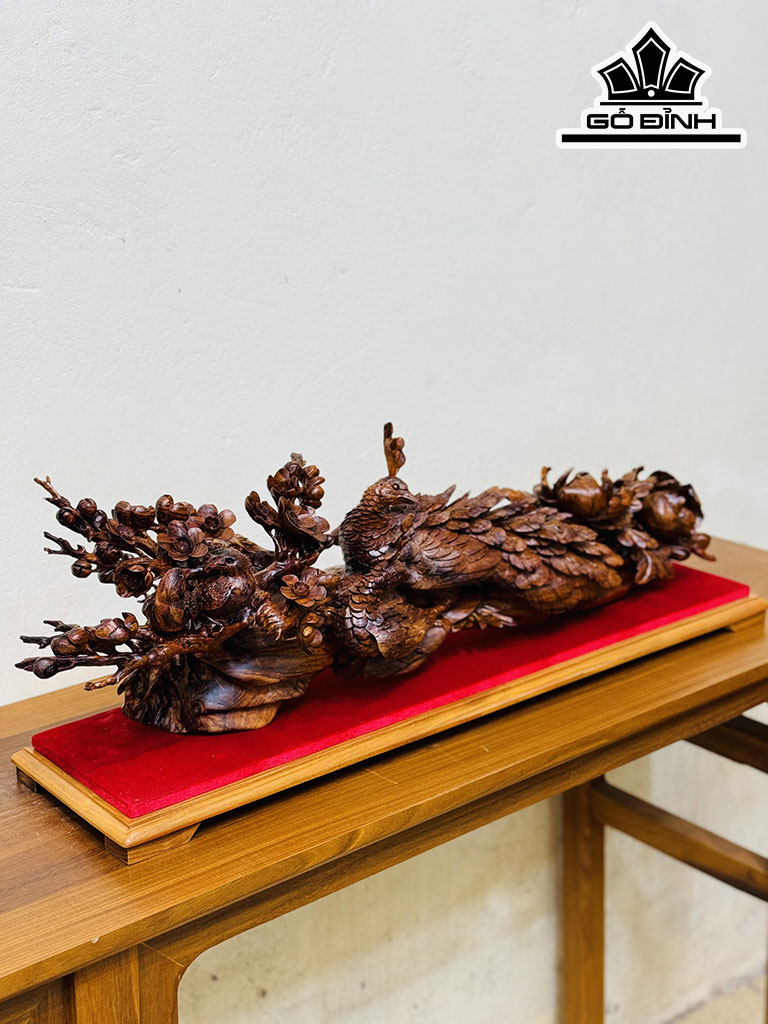 Tượng Phu Thê Viên Mãn Gỗ Sưa Cao 29 Ngang 80 Sâu 18 (cm)