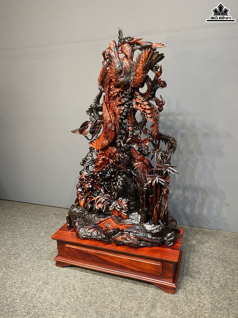 Tượng Phu Thê Viên Mãn Gỗ Trắc Cao Cả Kỷ 133 Ngang 72 Sâu 30 (cm) - Kỷ Cao 20 (cm)