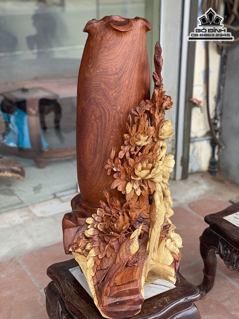 Tượng Phu Thê Viên Mãng Gỗ Hương Cao 79 Ngang 39 Sâu 46 (cm)