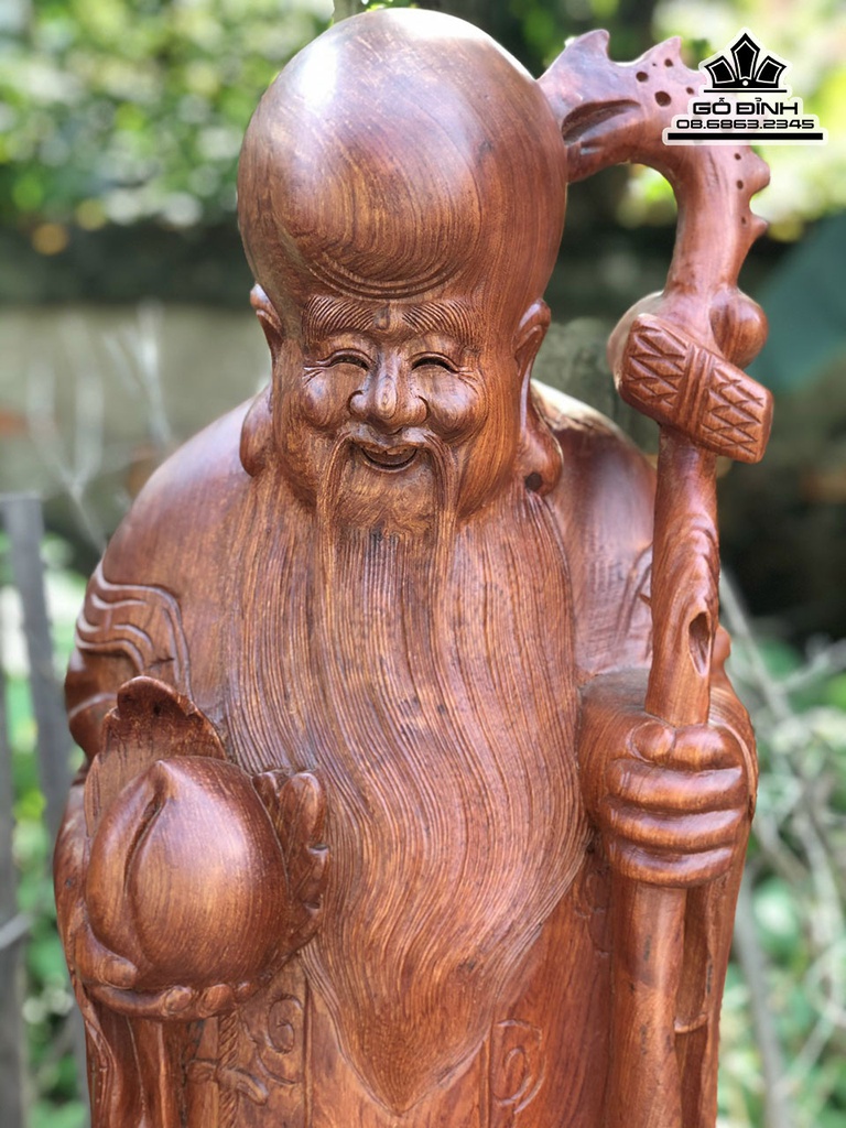 Tượng Phúc Lộc Thọ Gỗ Hương Cao 100 Ngang 32 Sâu 28 (cm)