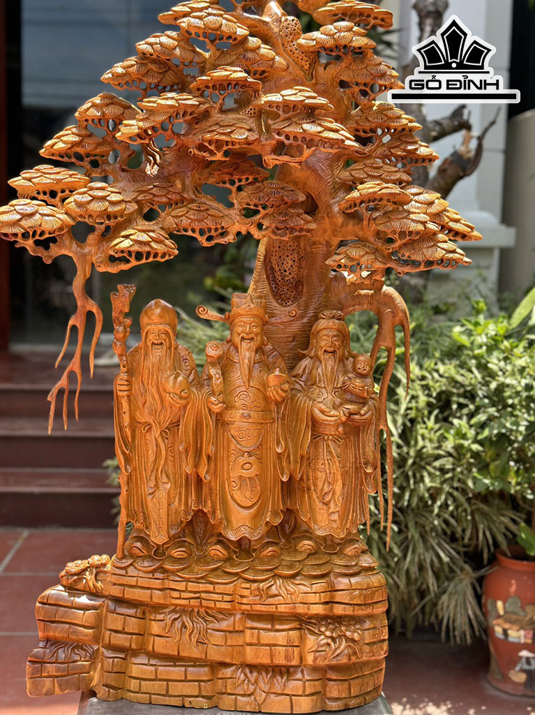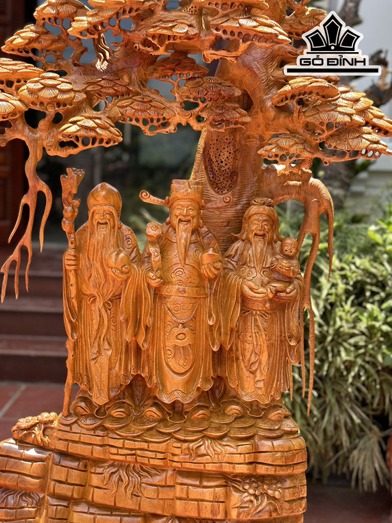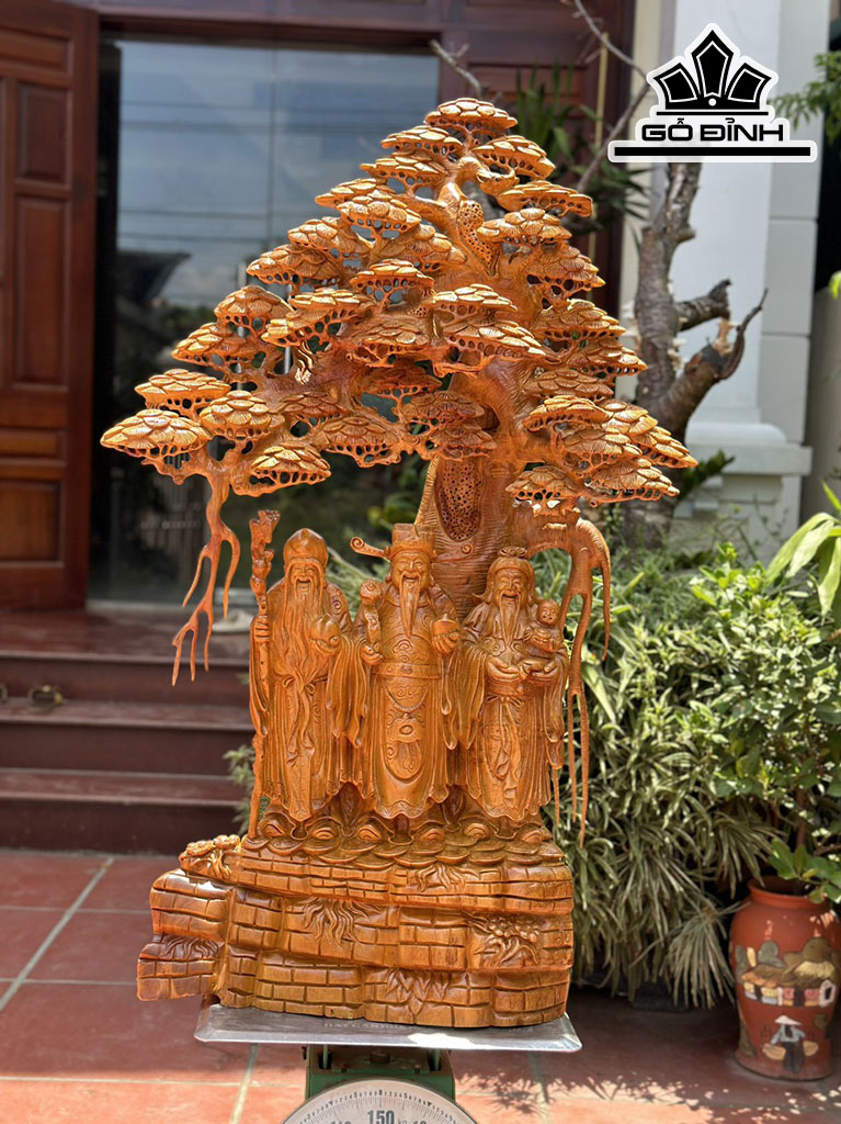 Tượng Phúc Lộc Thọ (Tam Đa) Gỗ Hương Cao 112 Ngang 75 Sâu 35 (cm)