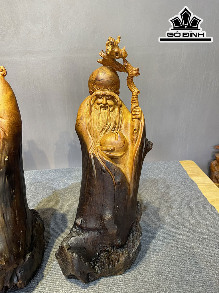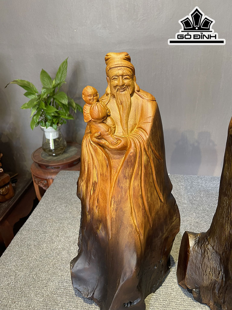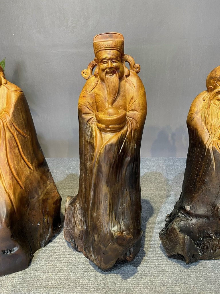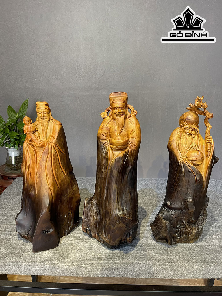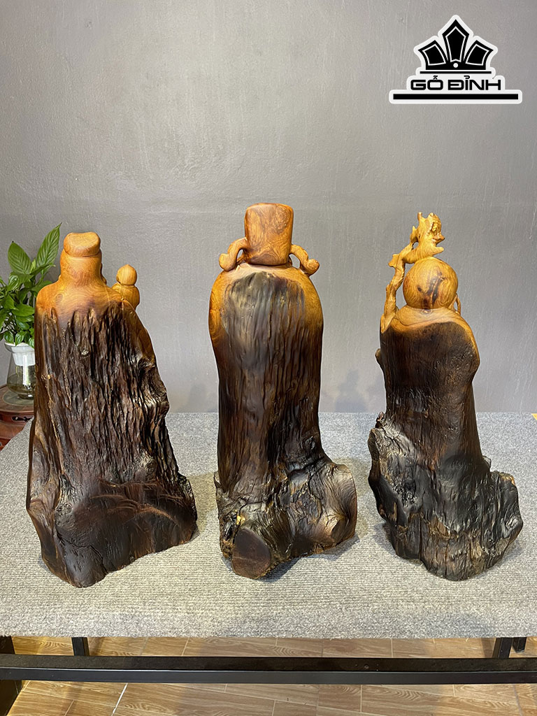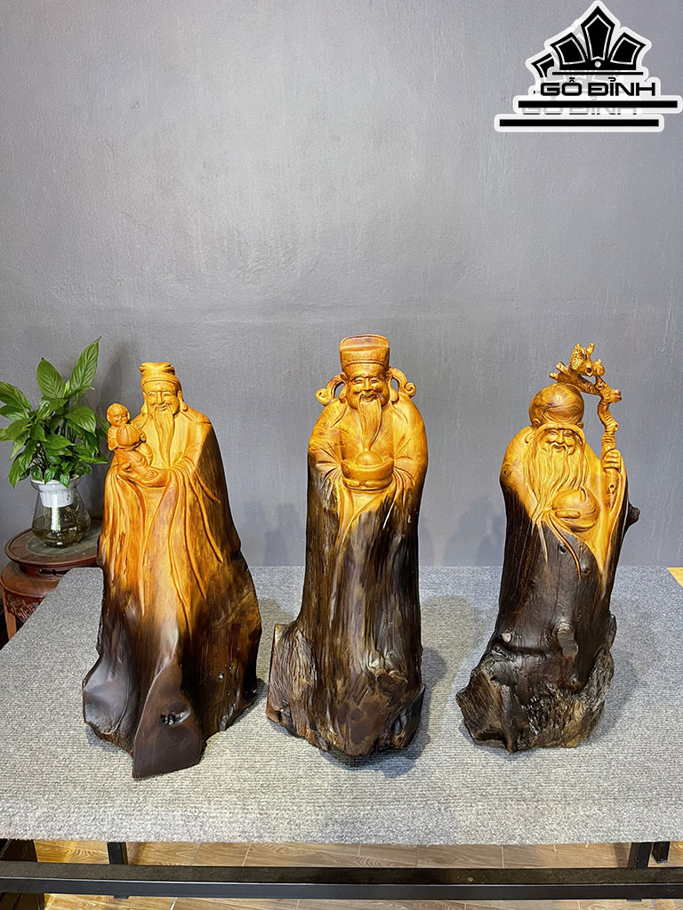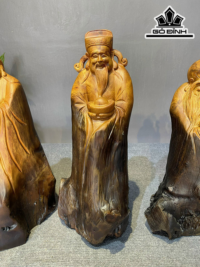 Tượng Phúc Lộc Thọ (Tam Đa) Gỗ Hương Cao 50 Ngang 20 Sâu 23 (cm)