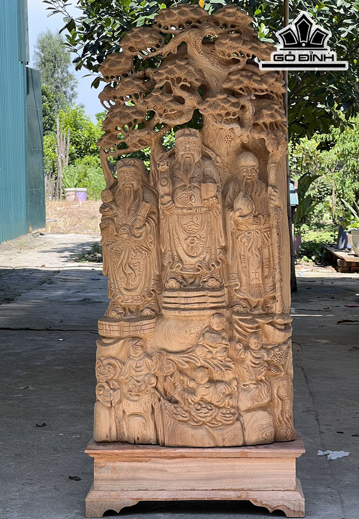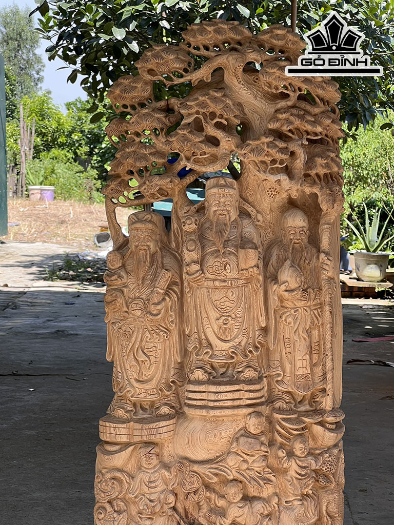 Tượng Phúc Lộc Thọ (Tam Đa) Gỗ Ngọc Am Cao 118 Ngang 50 Sâu 20 (cm)