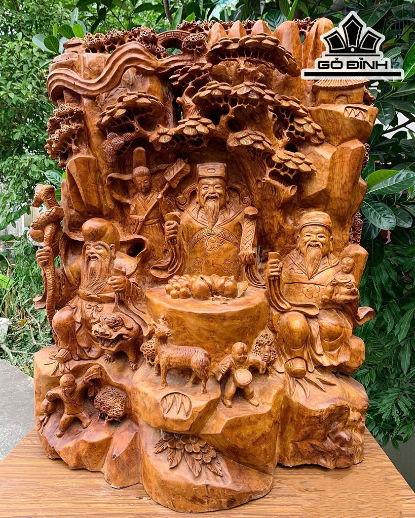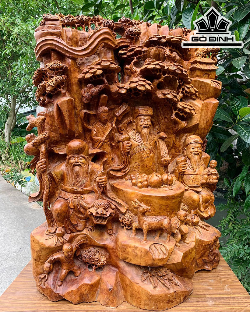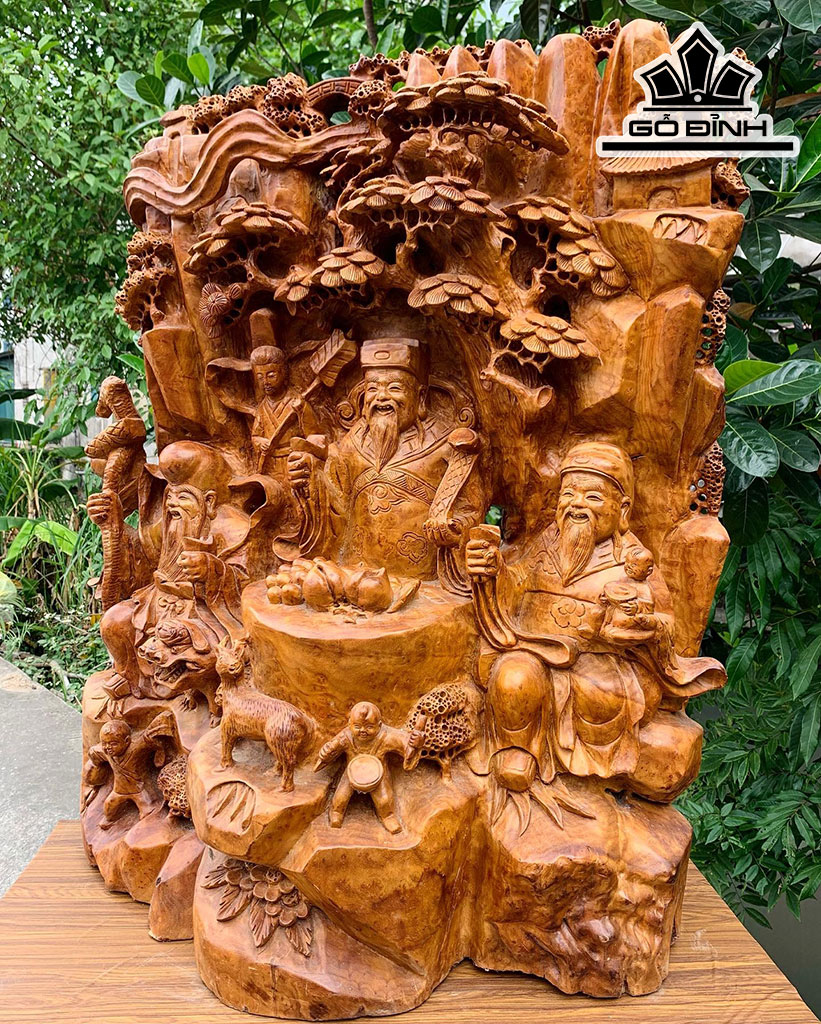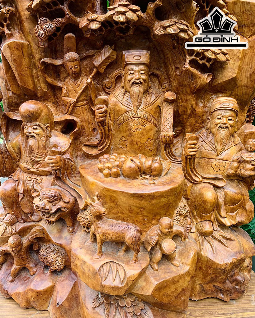 Tượng Phúc Lộc Thọ (Tam Đa) Gỗ Xá Xị Cao 90 Ngang 68 Sâu 4 (cm)