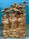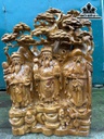 Tượng Phúc Lộc Thọ (Tam Đa) Đứng Gốc Tùng Gỗ Ngọc Am Cao 68 Ngang 50 Sâu 23 (cm)
