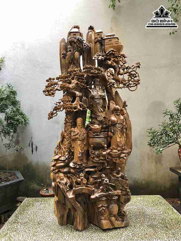 Tượng Phúc Lộc Thọ (Tam Đa) Gỗ Bách Xanh