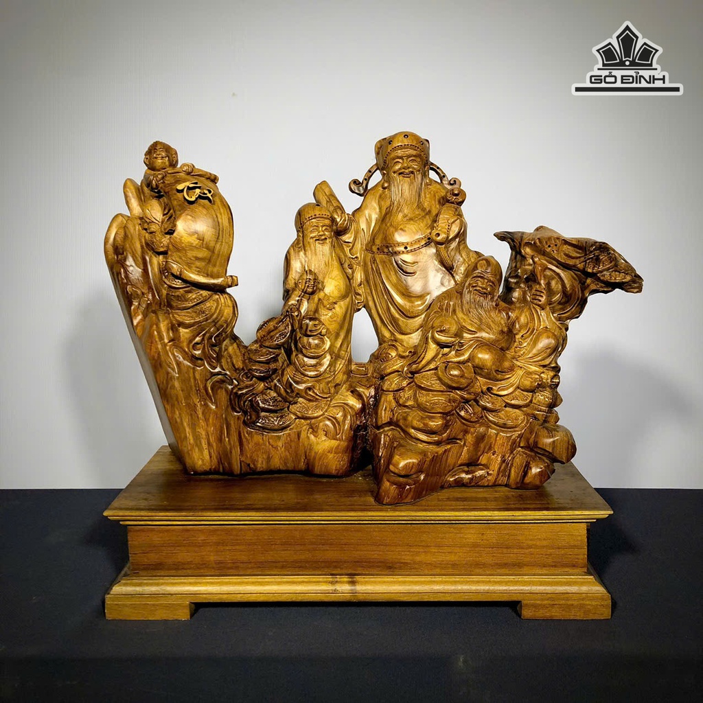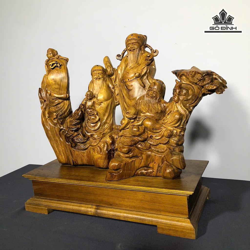Tượng Phúc Lộc Thọ (Tam Đa) Gỗ Bách Xanh Cao 45 Ngang 45 Sâu 20 (cm)