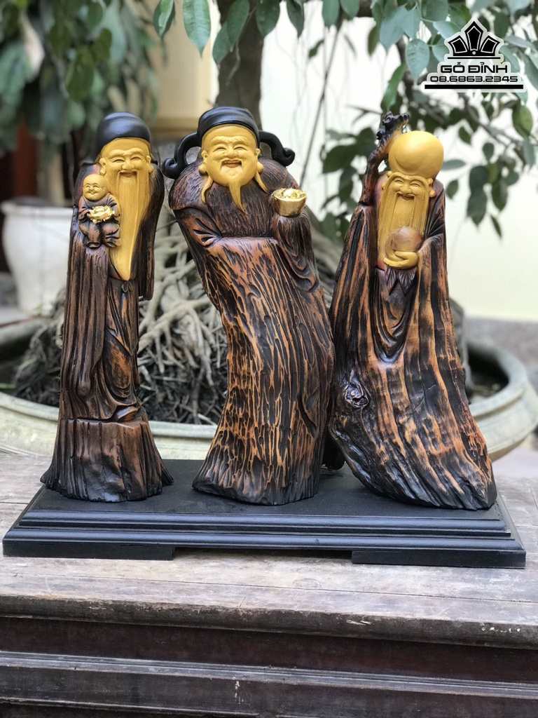 Tượng Phúc Lộc Thọ (Tam Đa) Gỗ Bách Xanh Cao 50 Ngang 19 Sâu 18 (cm)