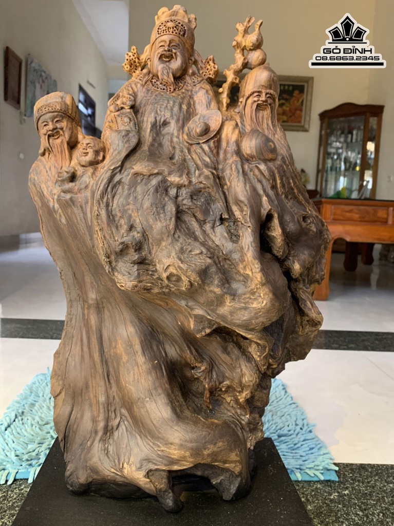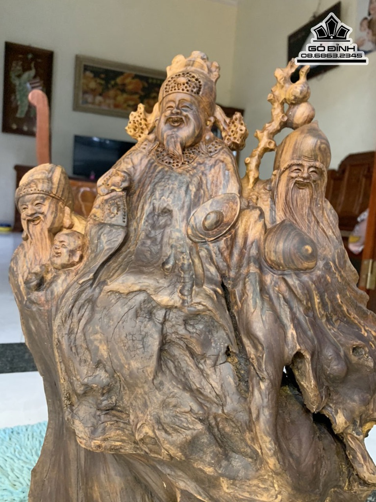 Tượng Phúc Lộc Thọ (Tam Đa) Gỗ Bách Xanh
