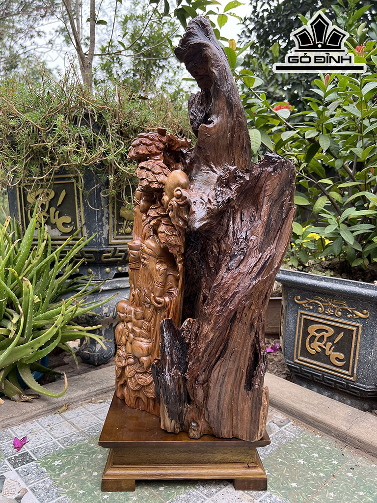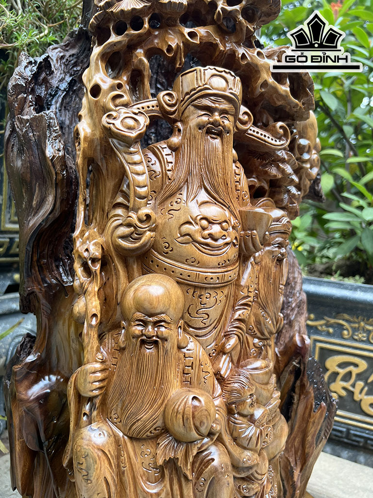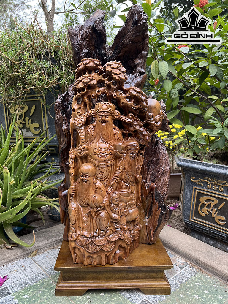 Tượng Phúc Lộc Thọ ( Tam Đa) Gỗ Bách Xanh Cao 67 Ngang 36 Sâu 25 (cm)