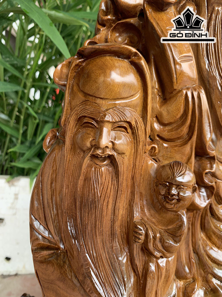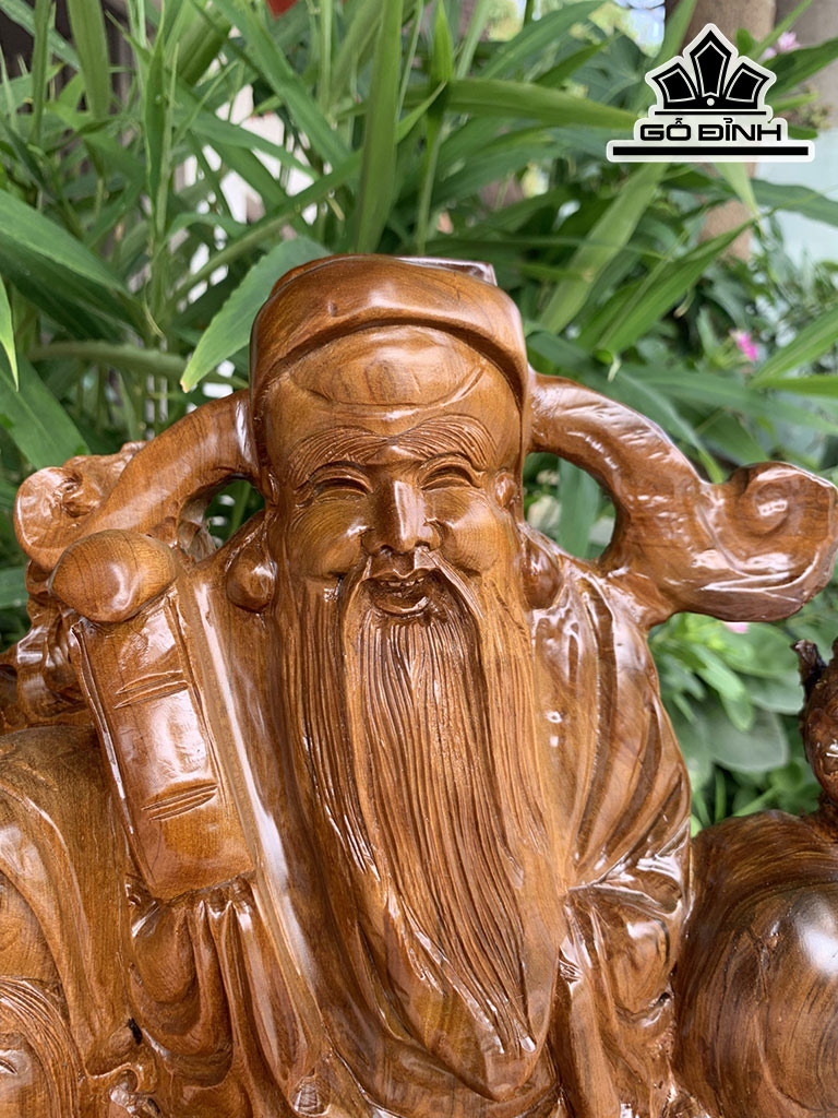 Tượng Phúc Lộc Thọ (Tam Đa) Gỗ Bách Xanh Cao 71 Ngang 44 Sâu 32 (cm)