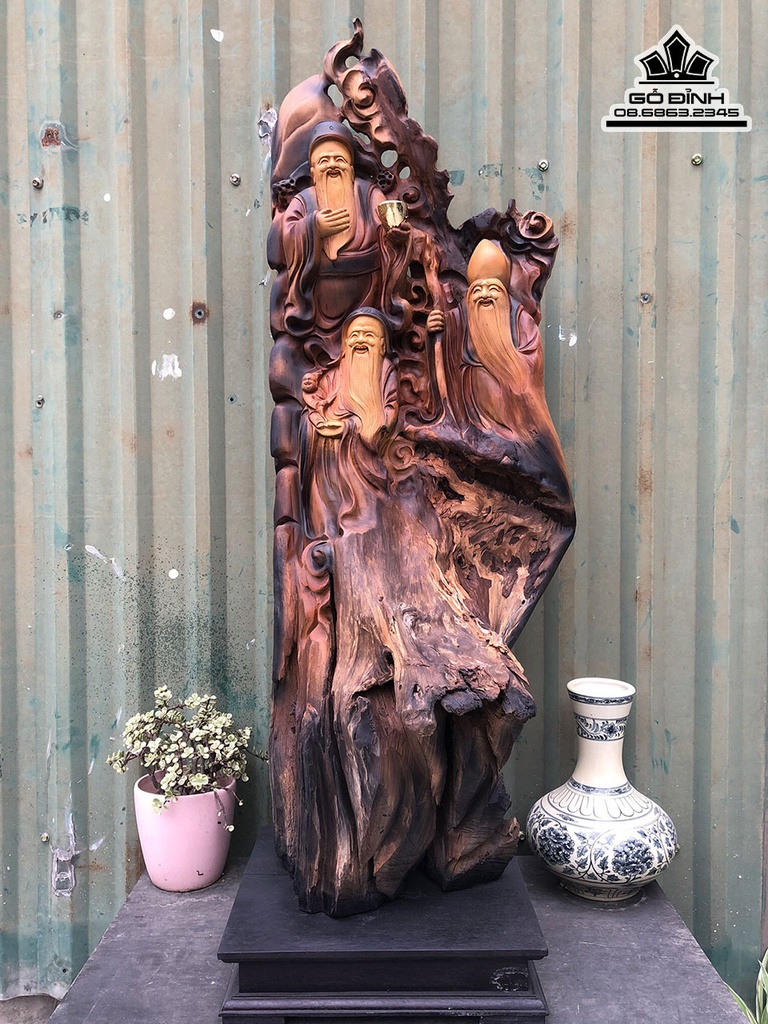 Tượng Phúc Lộc Thọ (Tam Đa) Gỗ Bách Xanh