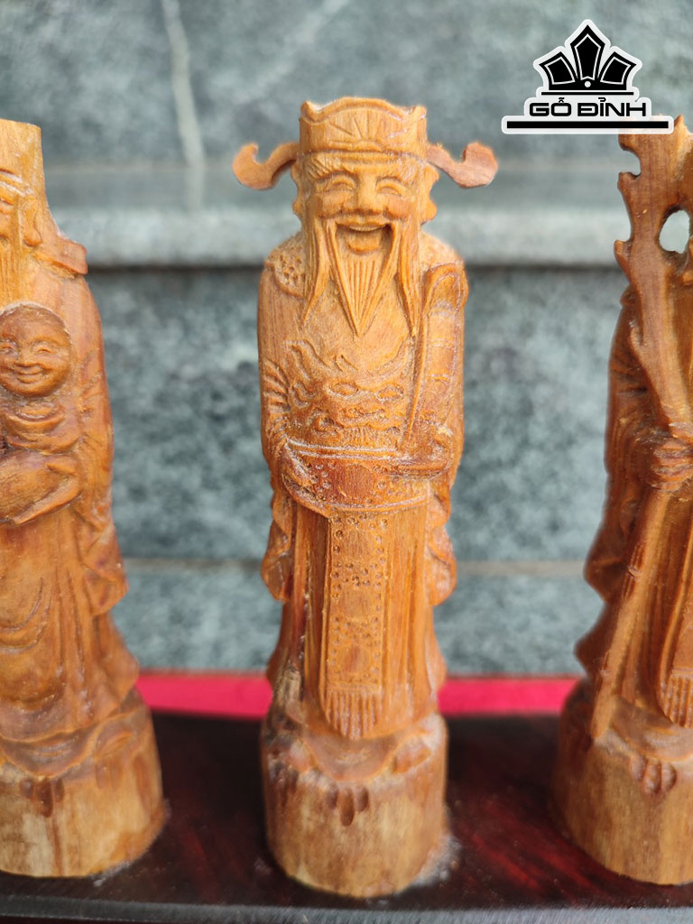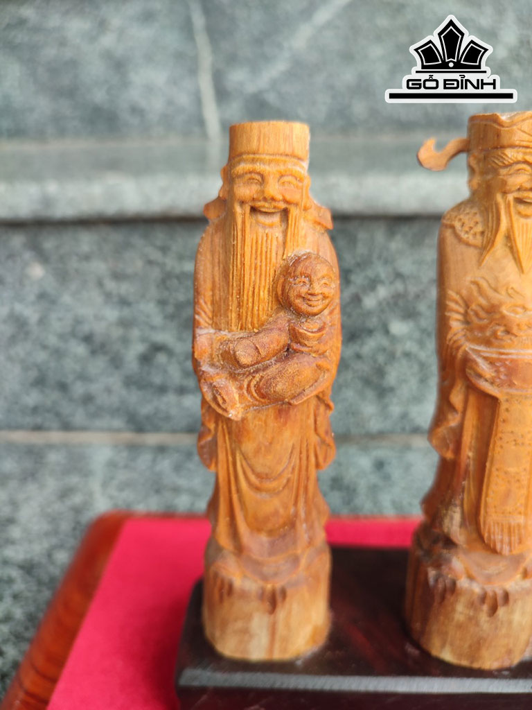 Tượng Phúc Lộc Thọ (Tam Đa) Gỗ Hoàng Đàn Cao 12,5 Ngang 3,5 Sâu 3 (cm)