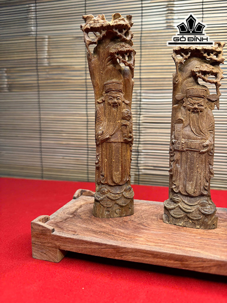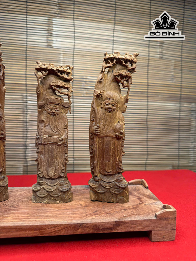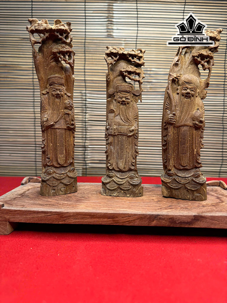 Tượng Phúc Lộc Thọ (Tam Đa) Gỗ Hoàng Đàn Cao 19 Ngang 5 Sâu 2,5 (cm)