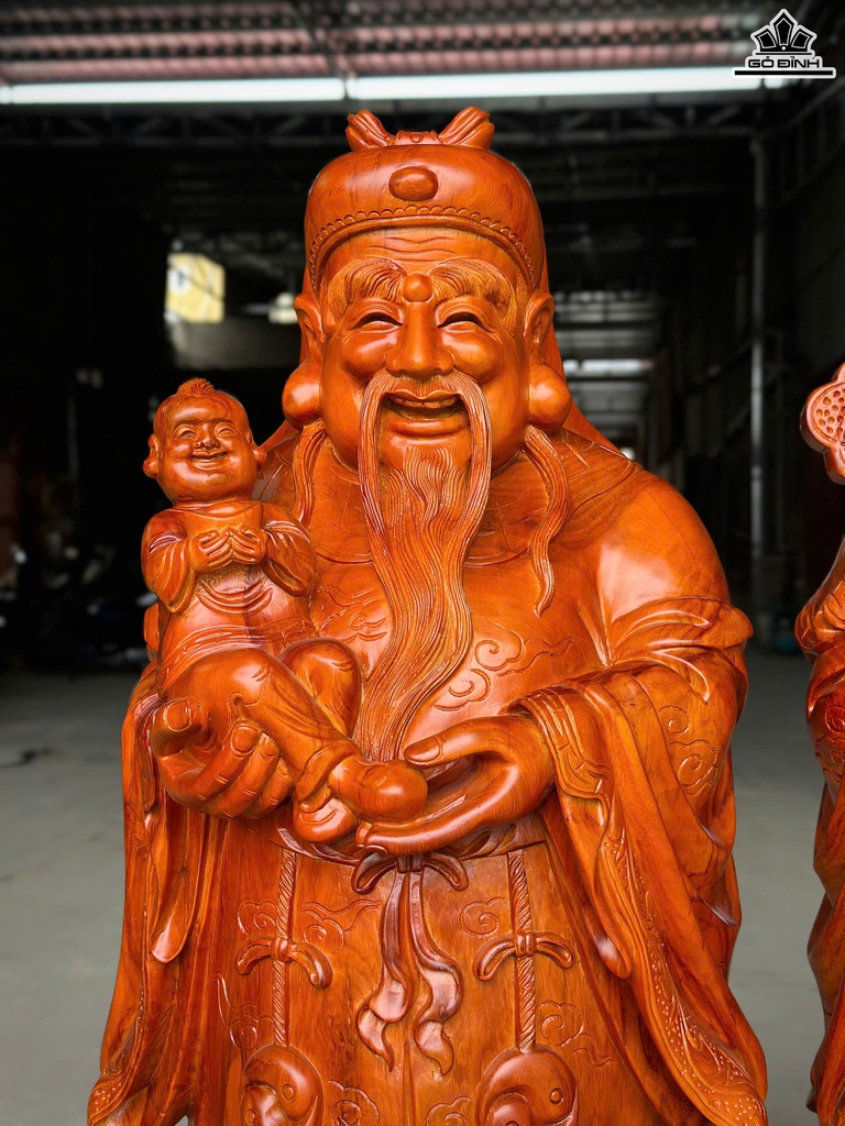 Tượng Phúc Lộc Thọ (Tam Đa) Gỗ Hương Cao 110 Ngang 37 Sâu 38 (cm)