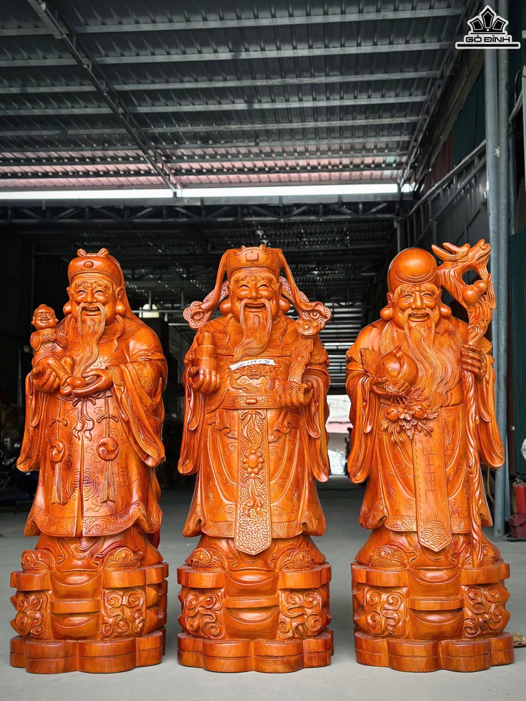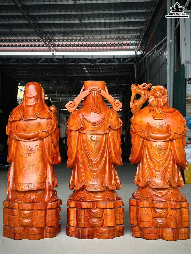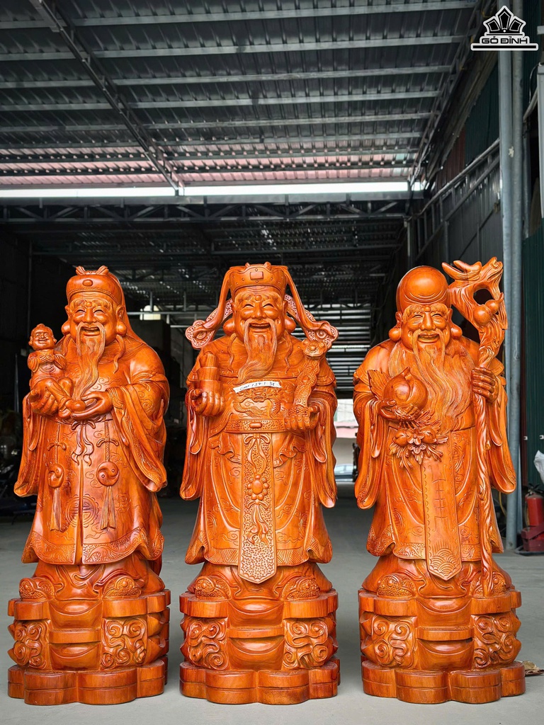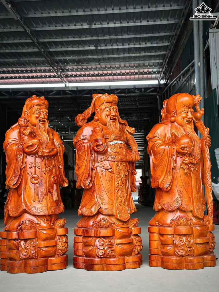 Tượng Phúc Lộc Thọ (Tam Đa) Gỗ Hương Cao 110 Ngang 37 Sâu 38 (cm)