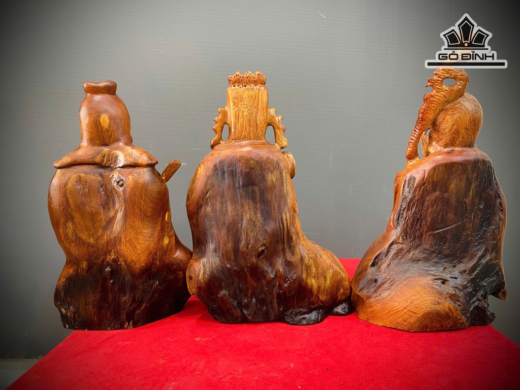 Tượng Phúc Lộc Thọ (Tam Đa) Gỗ Hương Cao 40 Ngang 30 Sâu 20 (cm)