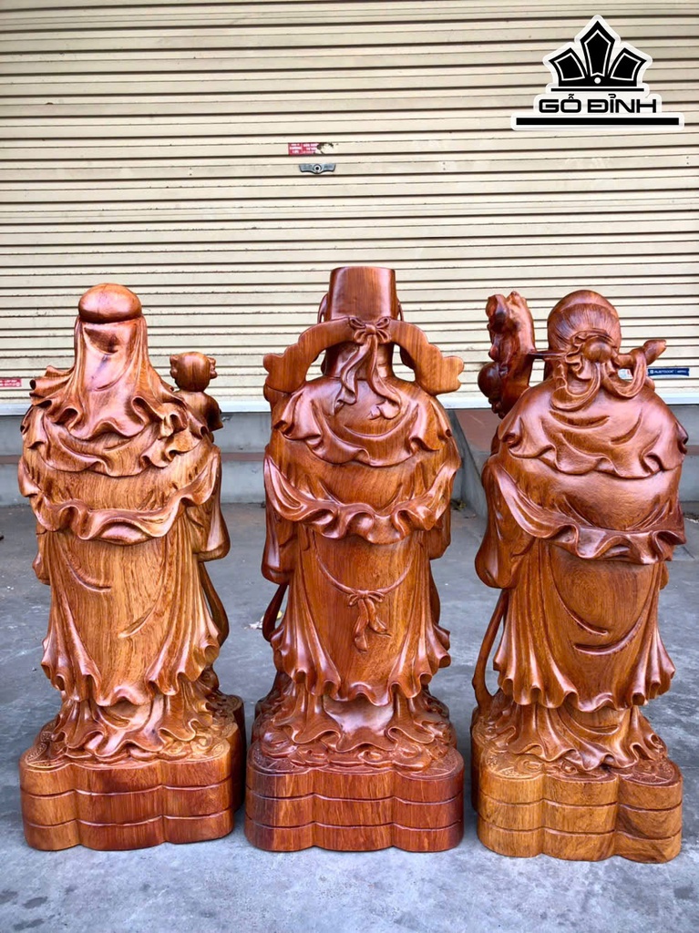 Tượng Phúc Lộc Thọ (Tam Đa) Gỗ Hương Cao 50 Ngang 19 Sâu 16 (cm)