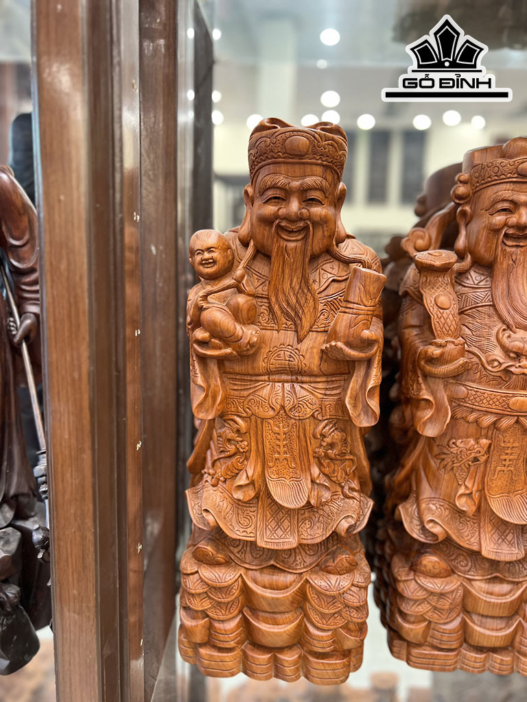 Tượng Phúc Lộc Thọ (Tam Đa) Gỗ Hương Cao 60 Ngang 22 Sâu 20 (cm)