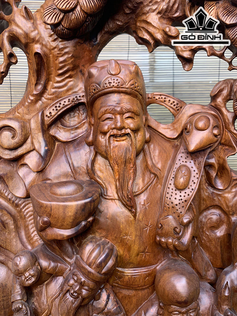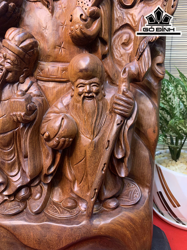 Tượng Phúc Lộc Thọ ( Tam Đa) Gỗ Hương Cao 68 Ngang 35 Sâu 11 (cm)