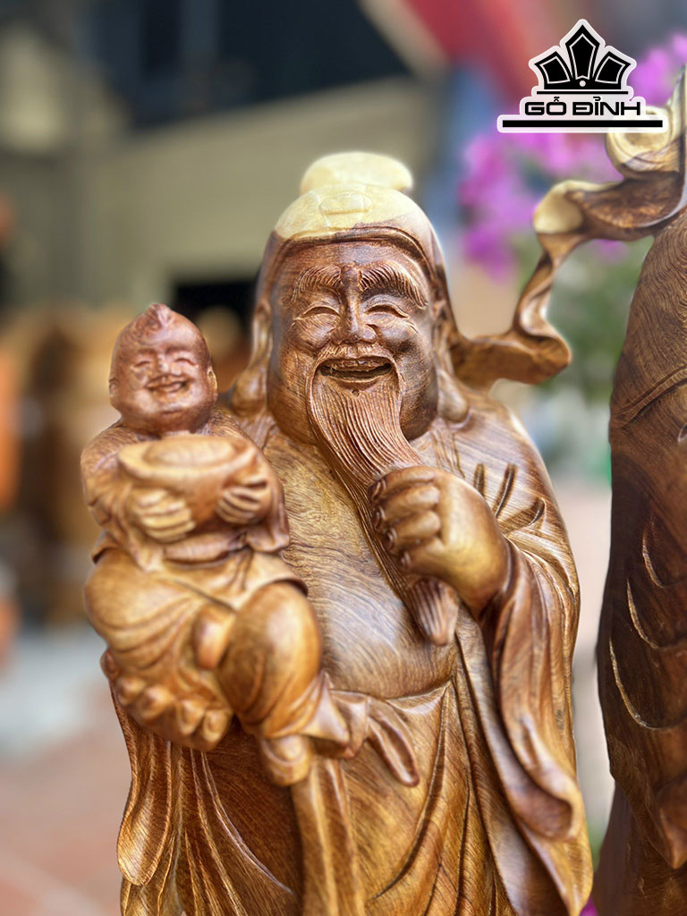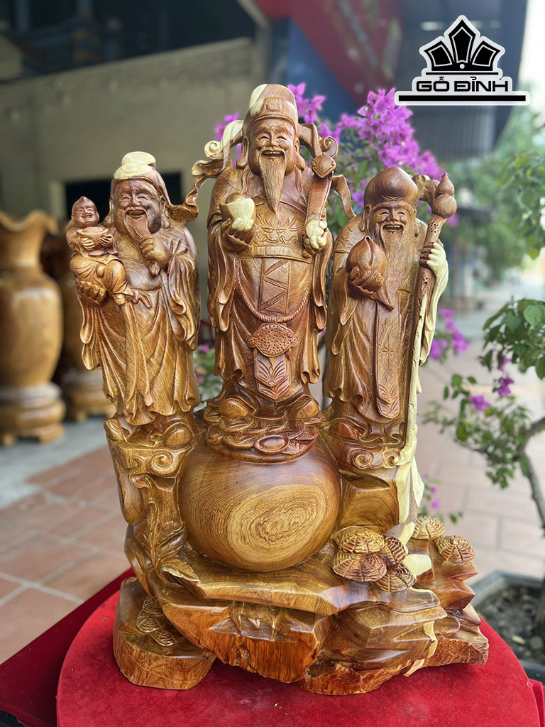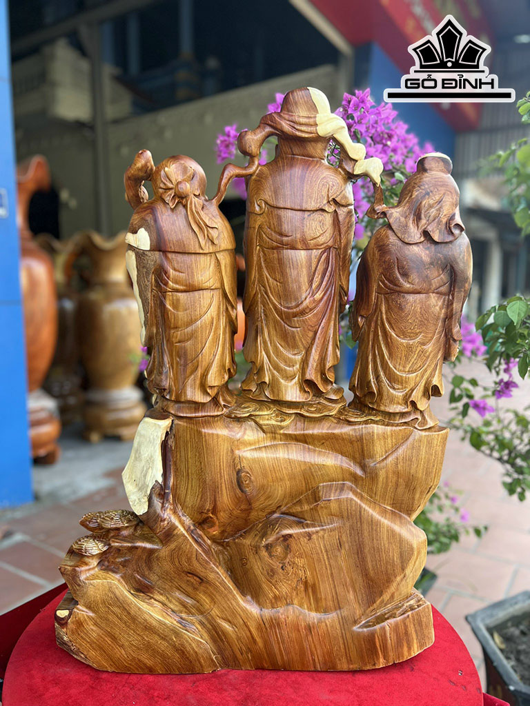 Tượng Phúc Lộc Thọ (Tam Đa) Gỗ Hương Cao 83 Ngang 56 Sâu 24 (cm)