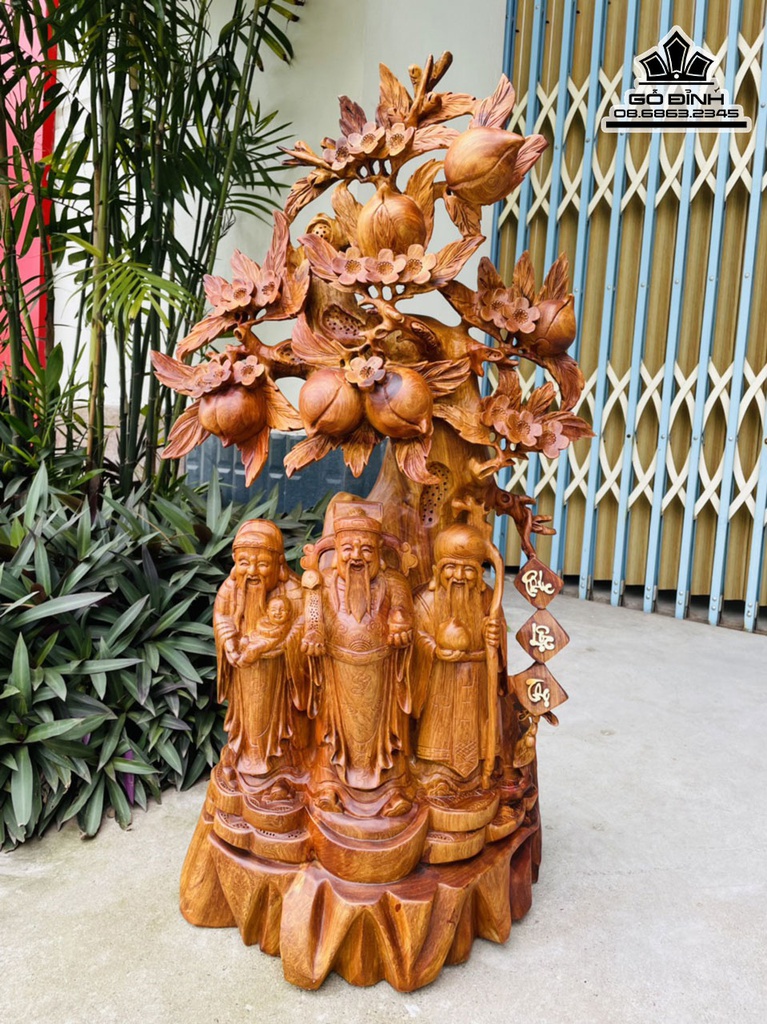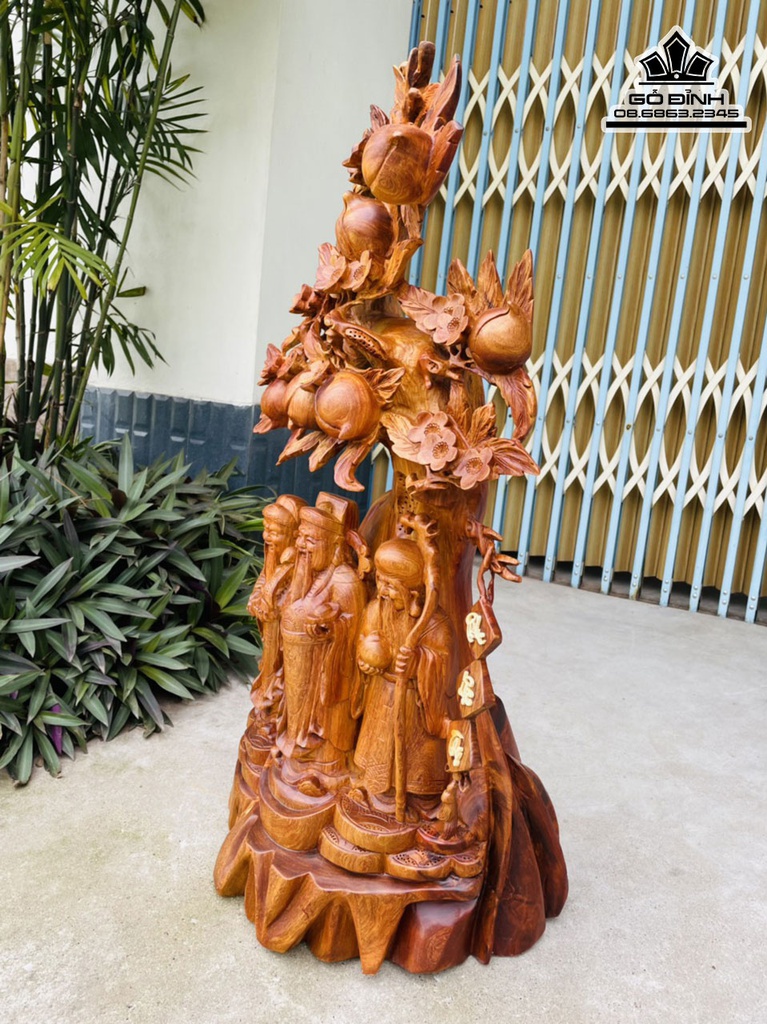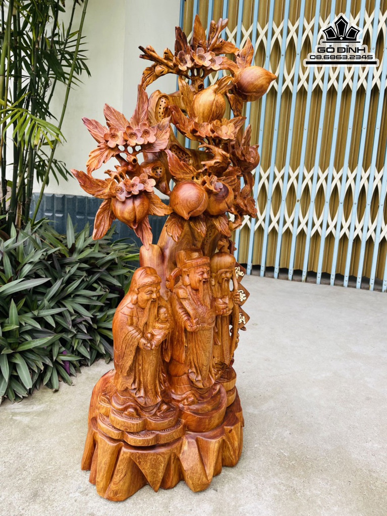 Tượng Phúc Lộc Thọ (Tam Đa) Gỗ Hương Cao 90 Ngang 46 Sâu 33 (cm)