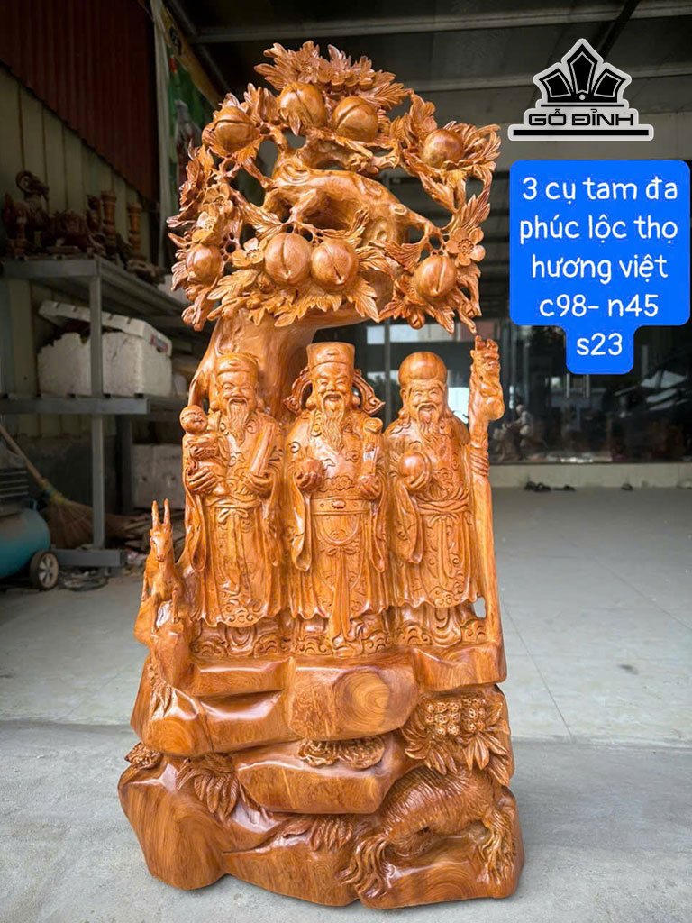 Tượng Phúc Lộc Thọ (Tam Đa) Gỗ Hương Cao 98 Ngang 45 Sâu 23 (cm)