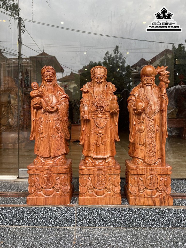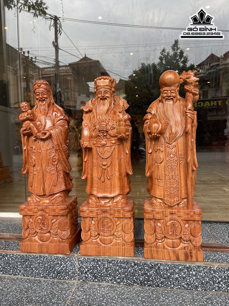 Tượng Phúc Lộc Thọ (Tam Đa) Gỗ Hương Đá Cao 60 Ngang 18 Sâu 14 (cm)